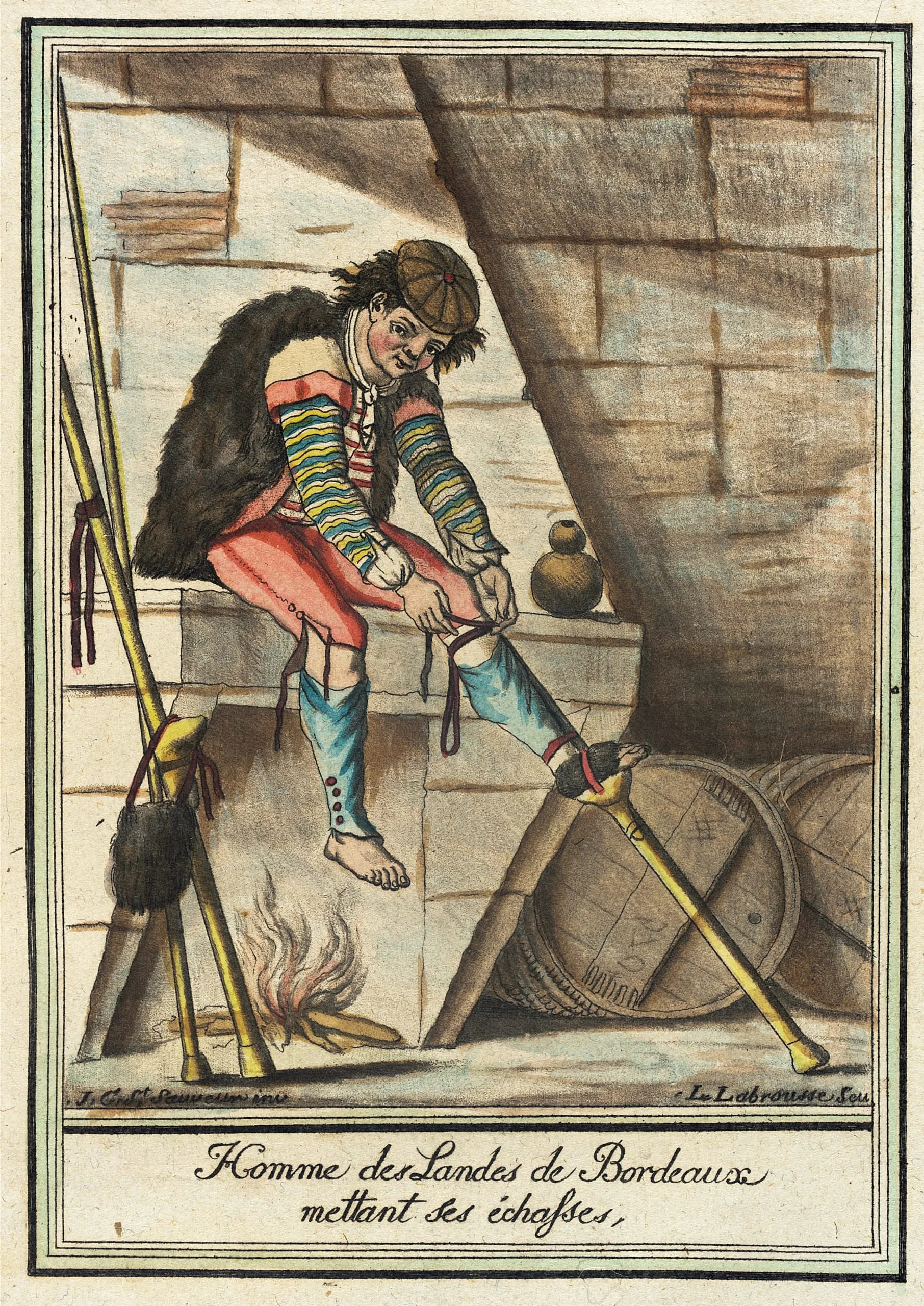 - Costumes de Différent Pays, 'Homme des Landes de Bordeaux Mettant ses Échasses'