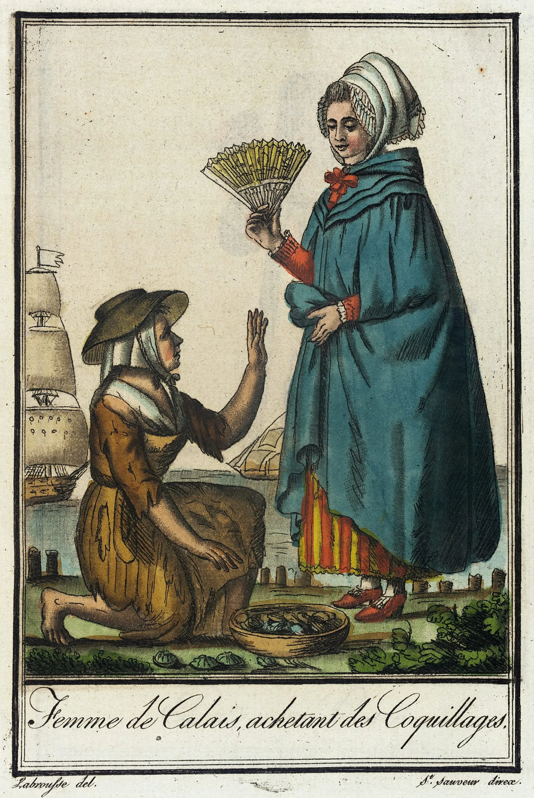 - Costumes de Différent Pays, 'Femme de Calais, Achetant des Coquillages'