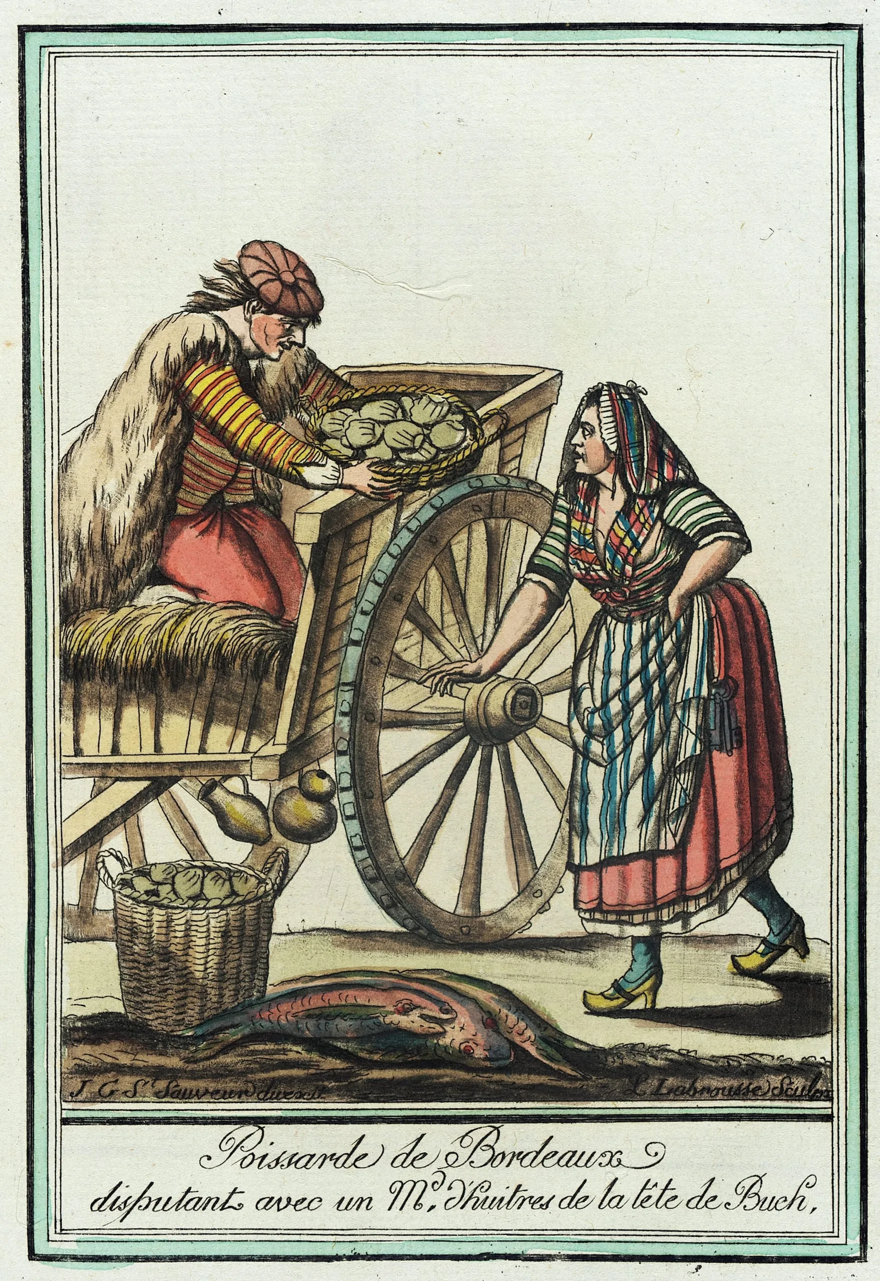 - Costumes de Différent Pays, 'Poissarde de Bordeaux disputant avec un Md. l'huitres de la Téte de Buch'