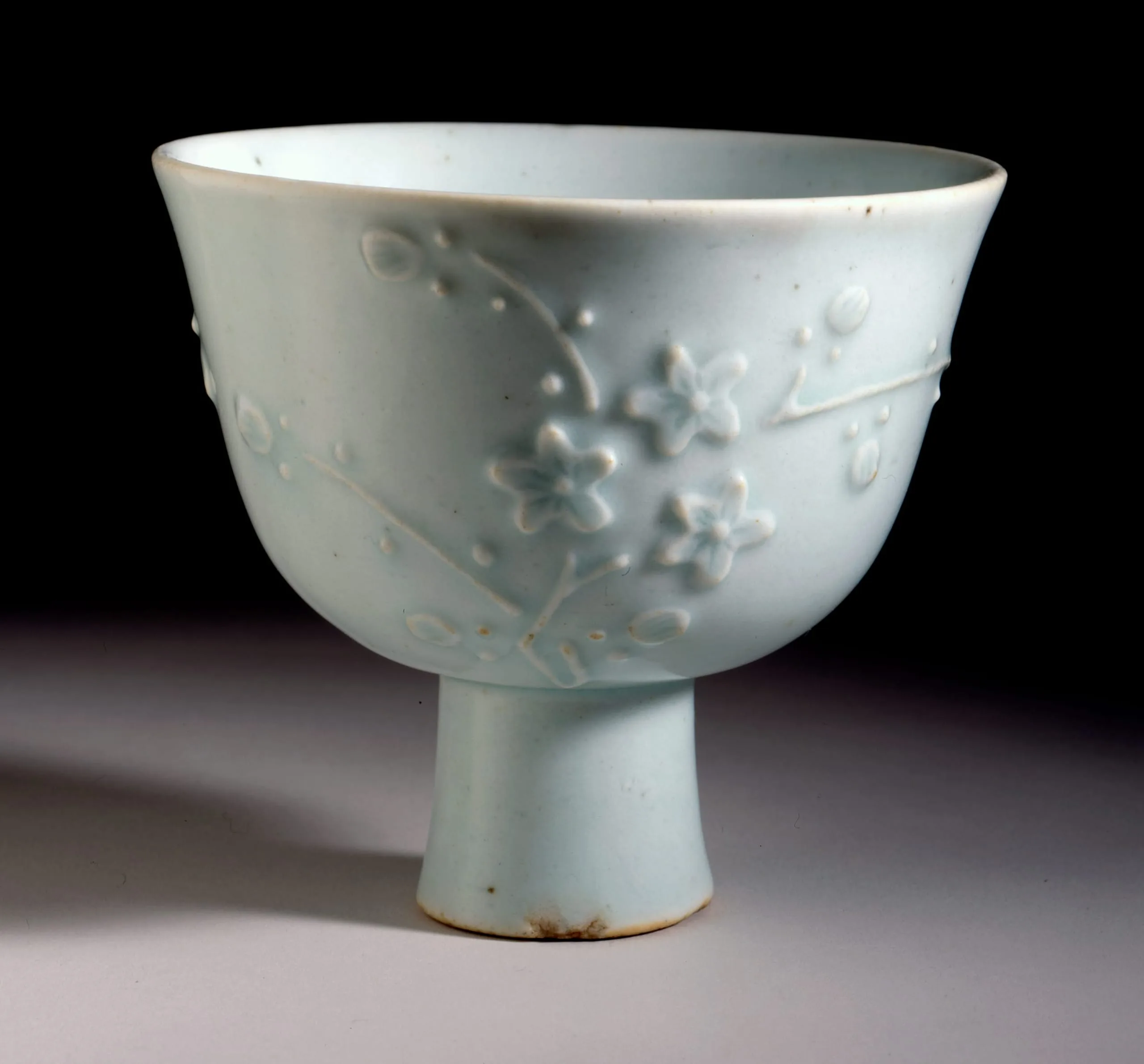 - Wheel-thrown porcelain with applied decoration and clear glaze