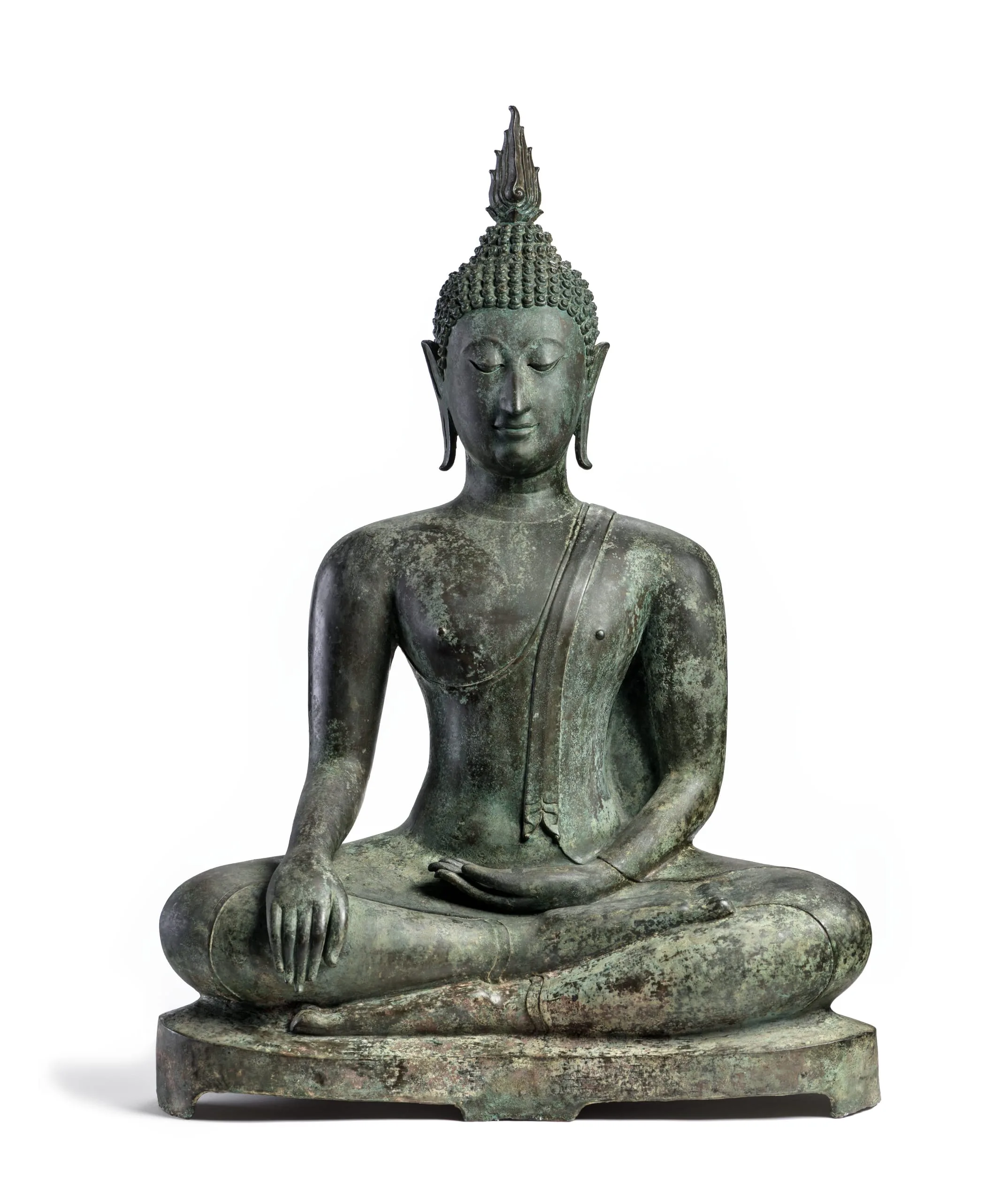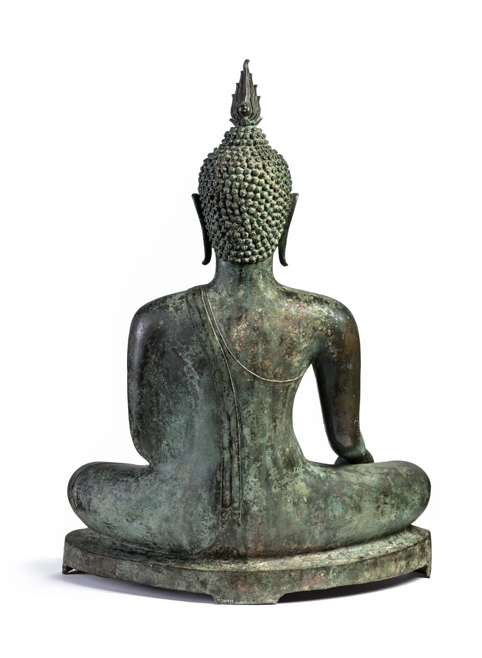 This sculpture is one of the masterpieces in LACMA’s Southeast Asian art collection. It is in the style of a type of Buddha image that developed in Thailand in the 14th century and is associated with the site and kingdom of Sukhothai (1238–1438) in present-day north-central Thailand. The Sukhothai period was the beginning of the modern Thai nation and a golden period of tremendous cultural and artistic achievements. Perhaps one of the greatest accomplishments was the creation of this style of Buddha, still the most praised in Thailand and copied repeatedly.