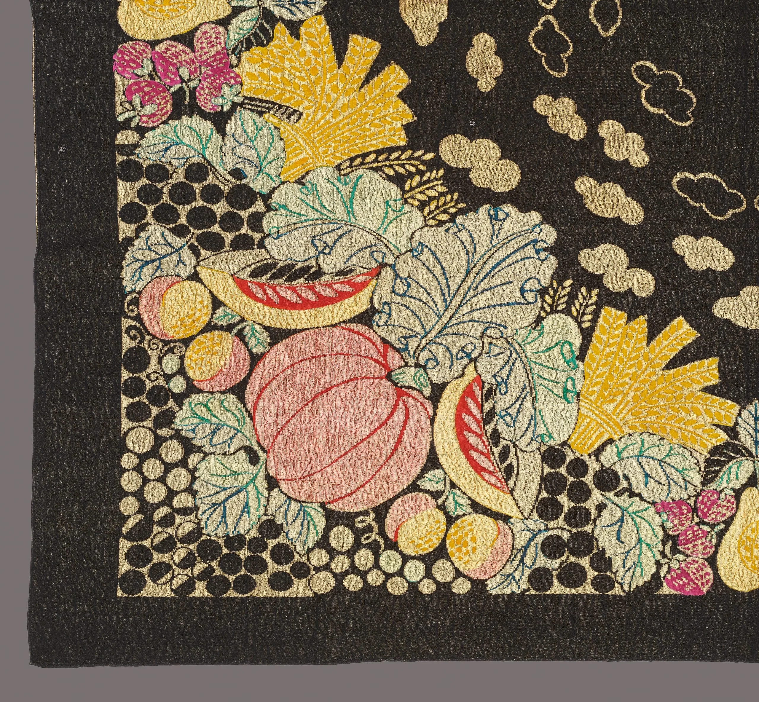 - Silk and metallic-thread damask, printed