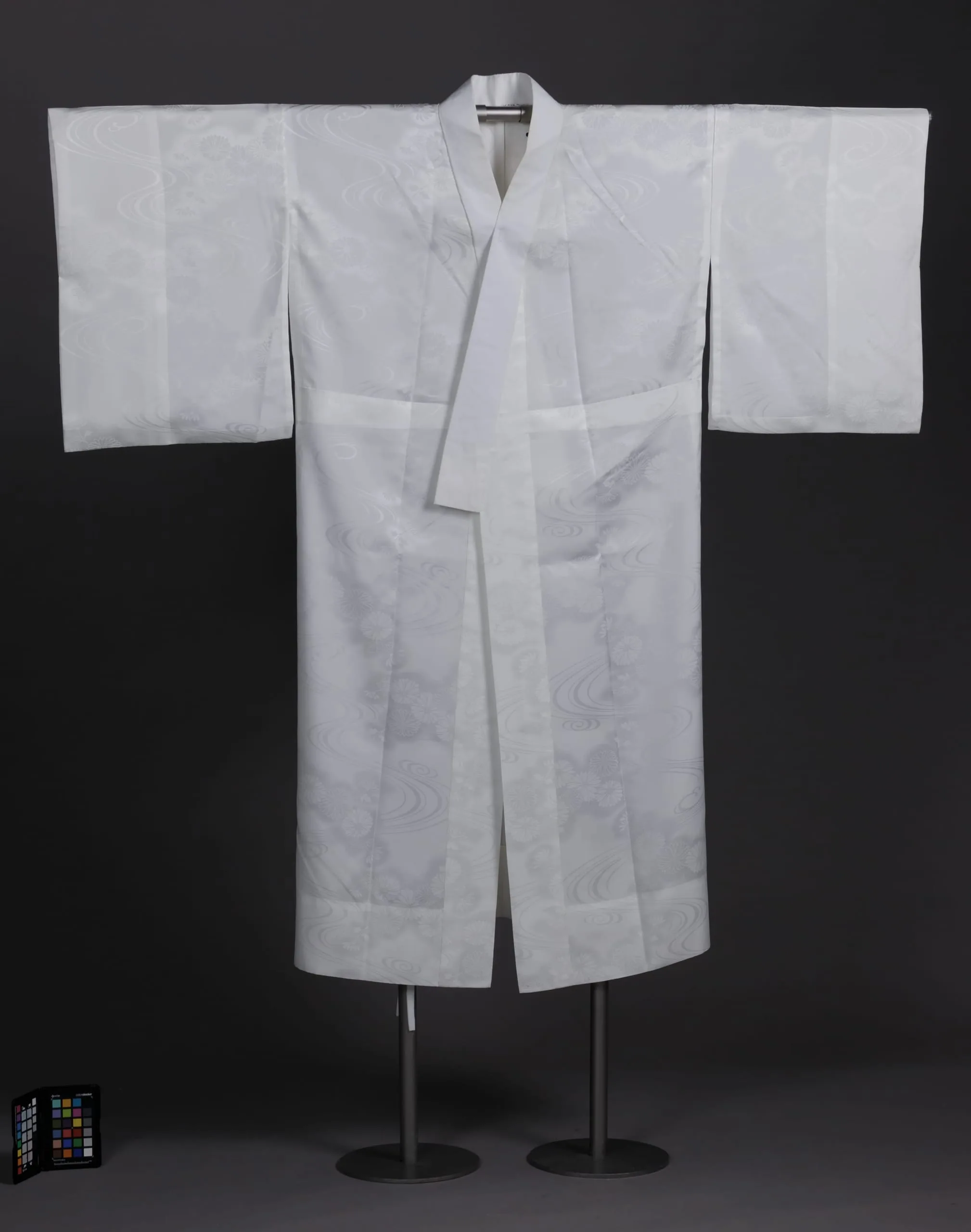 - Woman's Kimono Ensemble (Summer Kimono (Hitoe) with Chrysanthemum, Under-kimono (Juban), Obi with Swirling Water and Waves, Sash (Obiage), Cord (Obijime), and Pair of Zori)