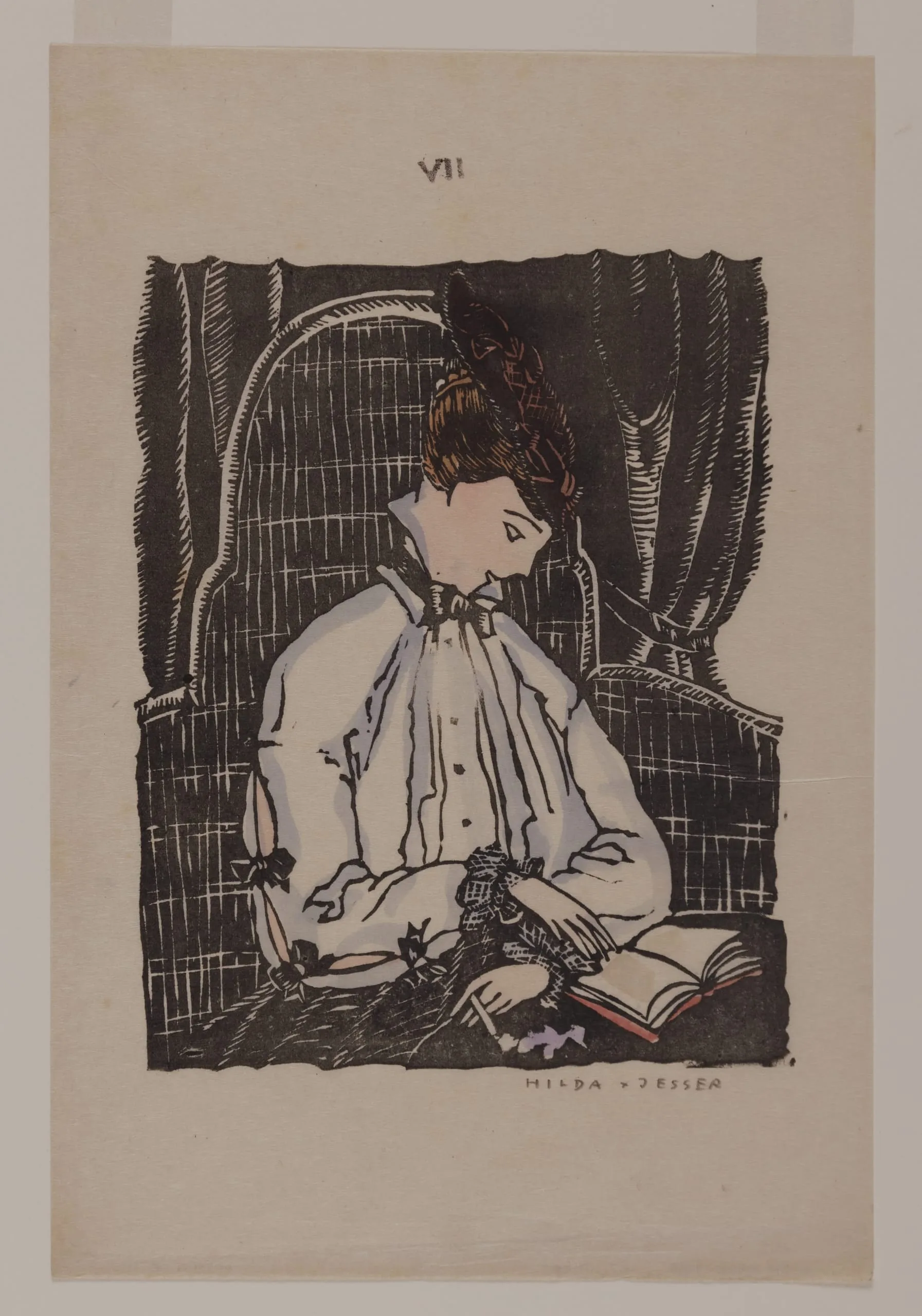 - Linoleum cut, ink and watercolor on paper