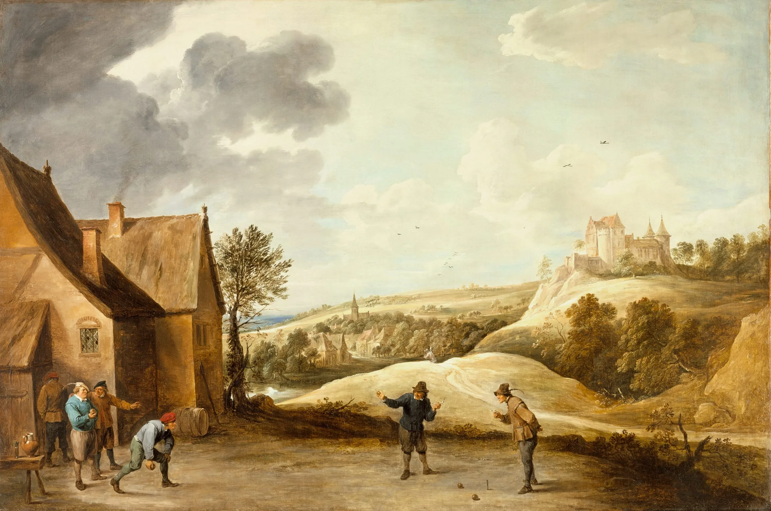 - Landscape with Peasants Playing Bowls Outside an Inn