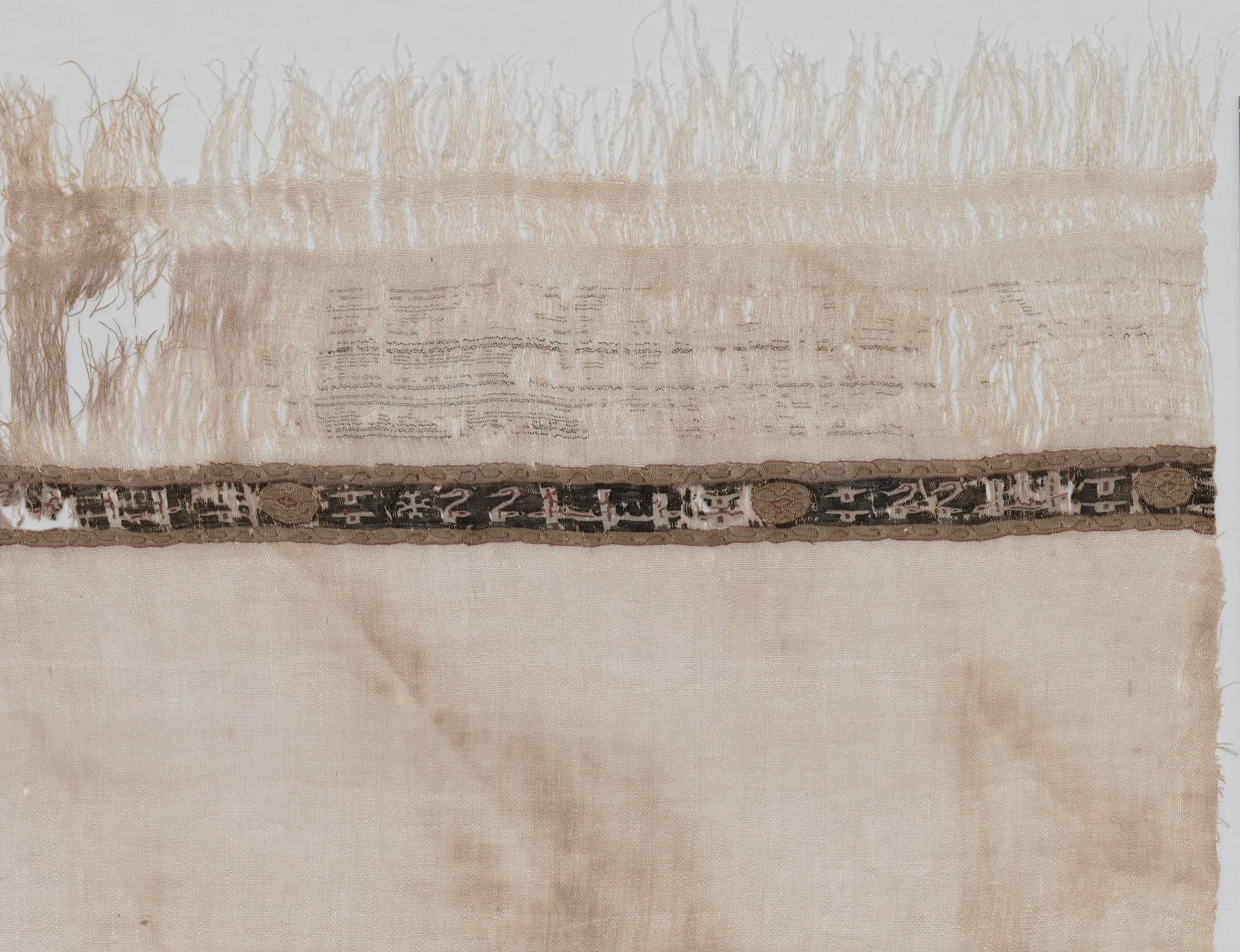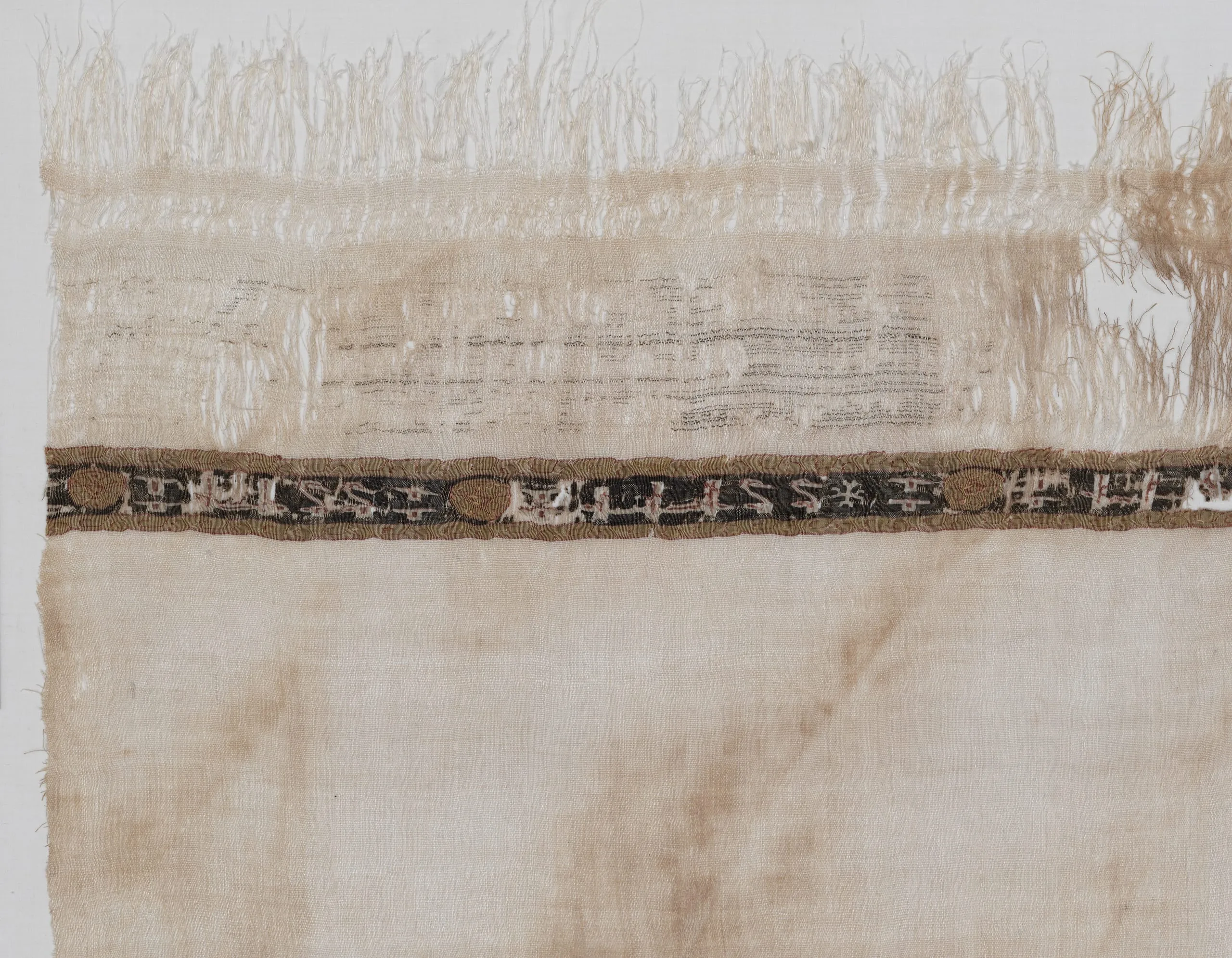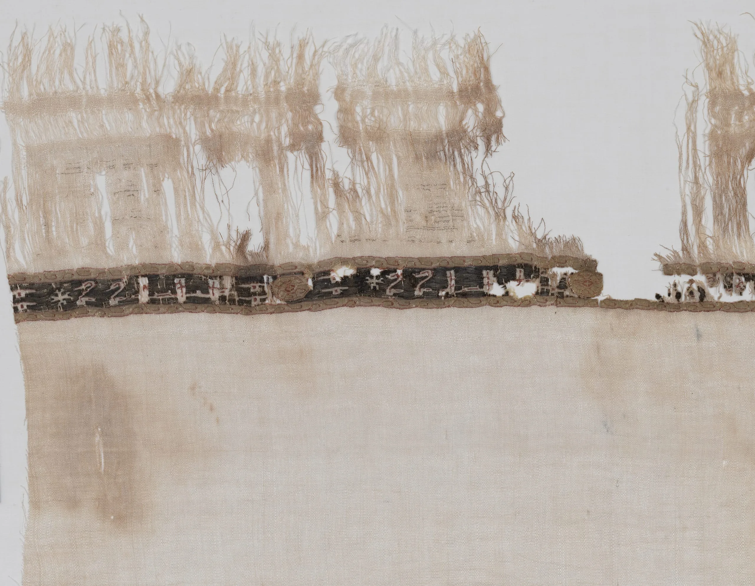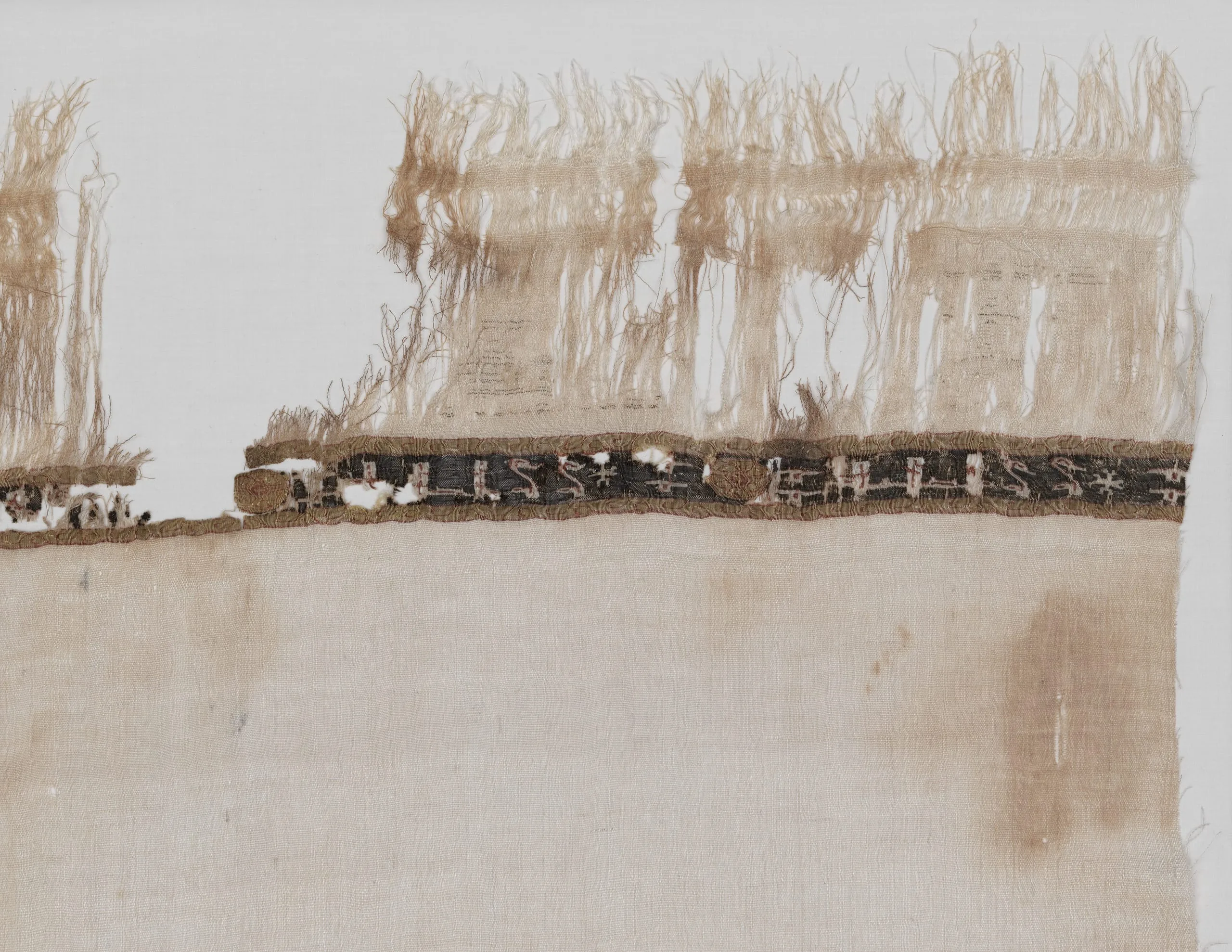 - Linen plain weave, linen with silk weft-faced tapestry weave