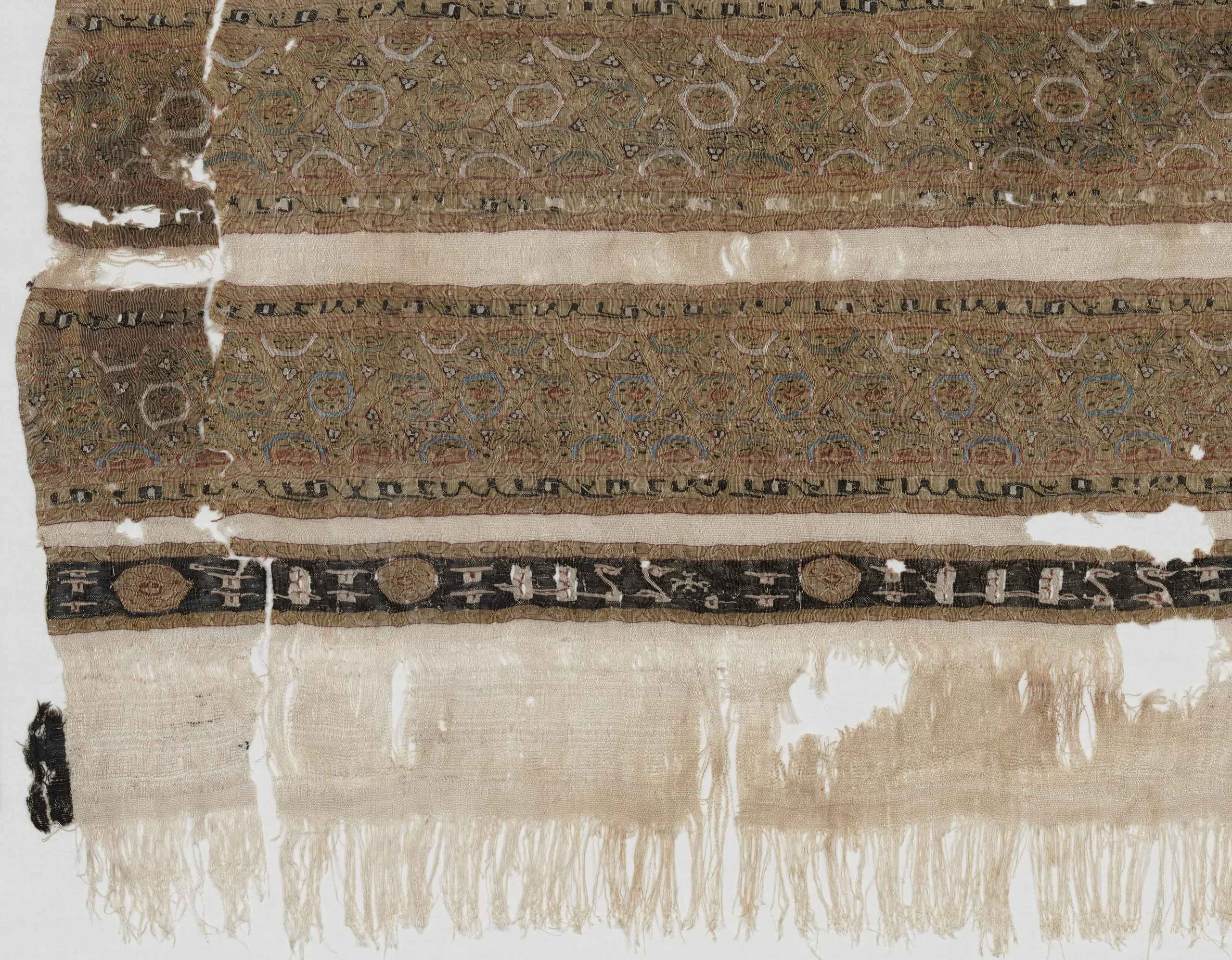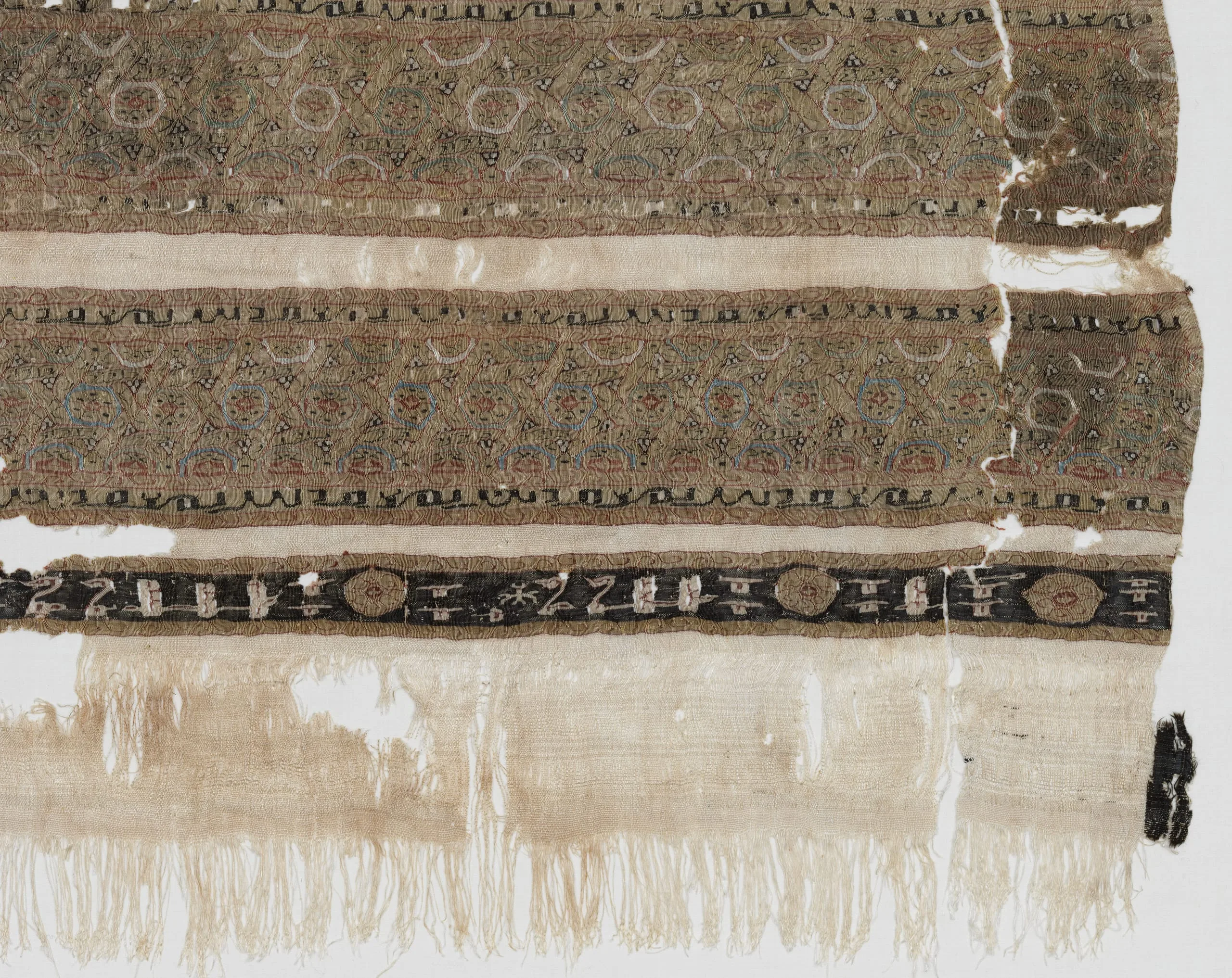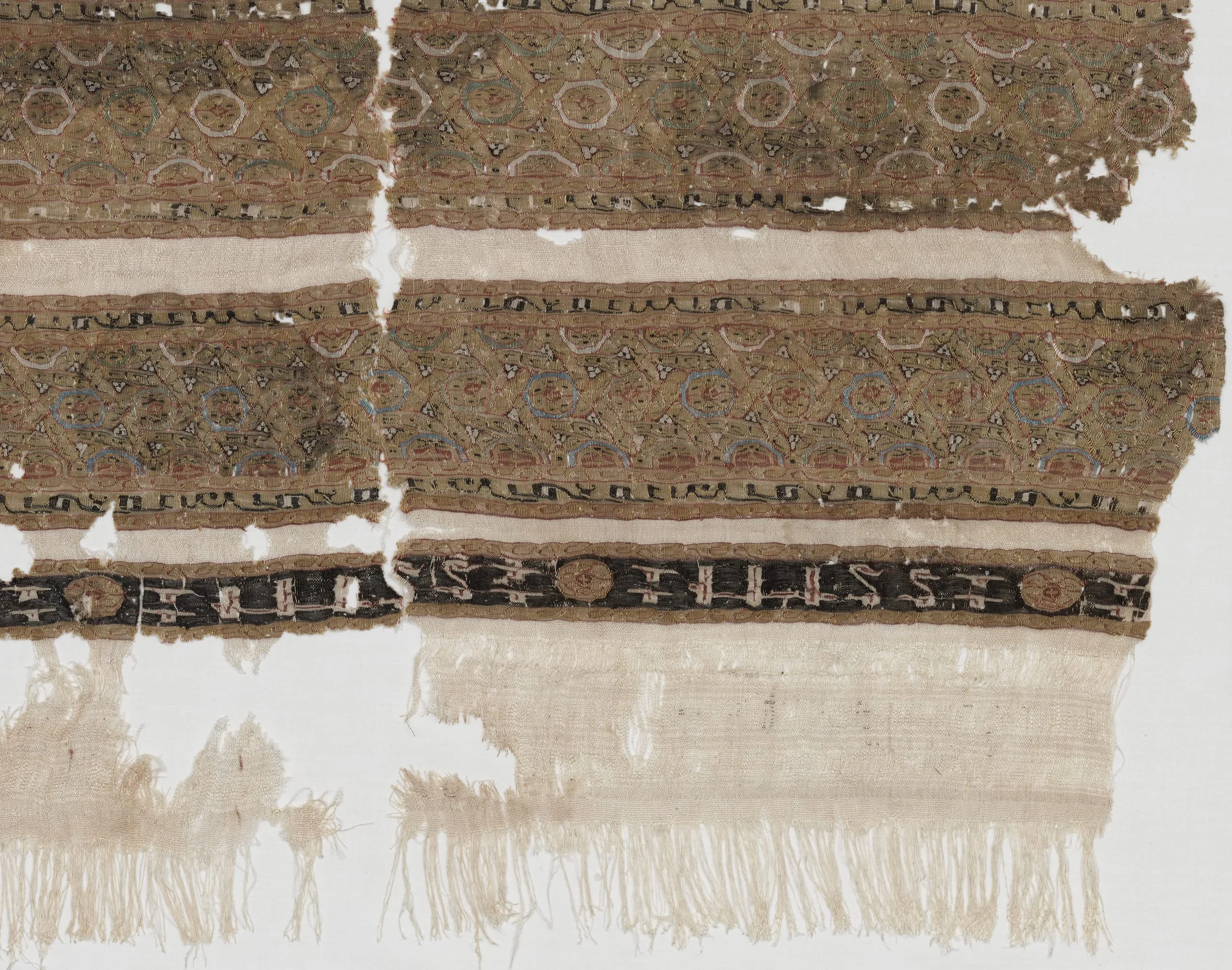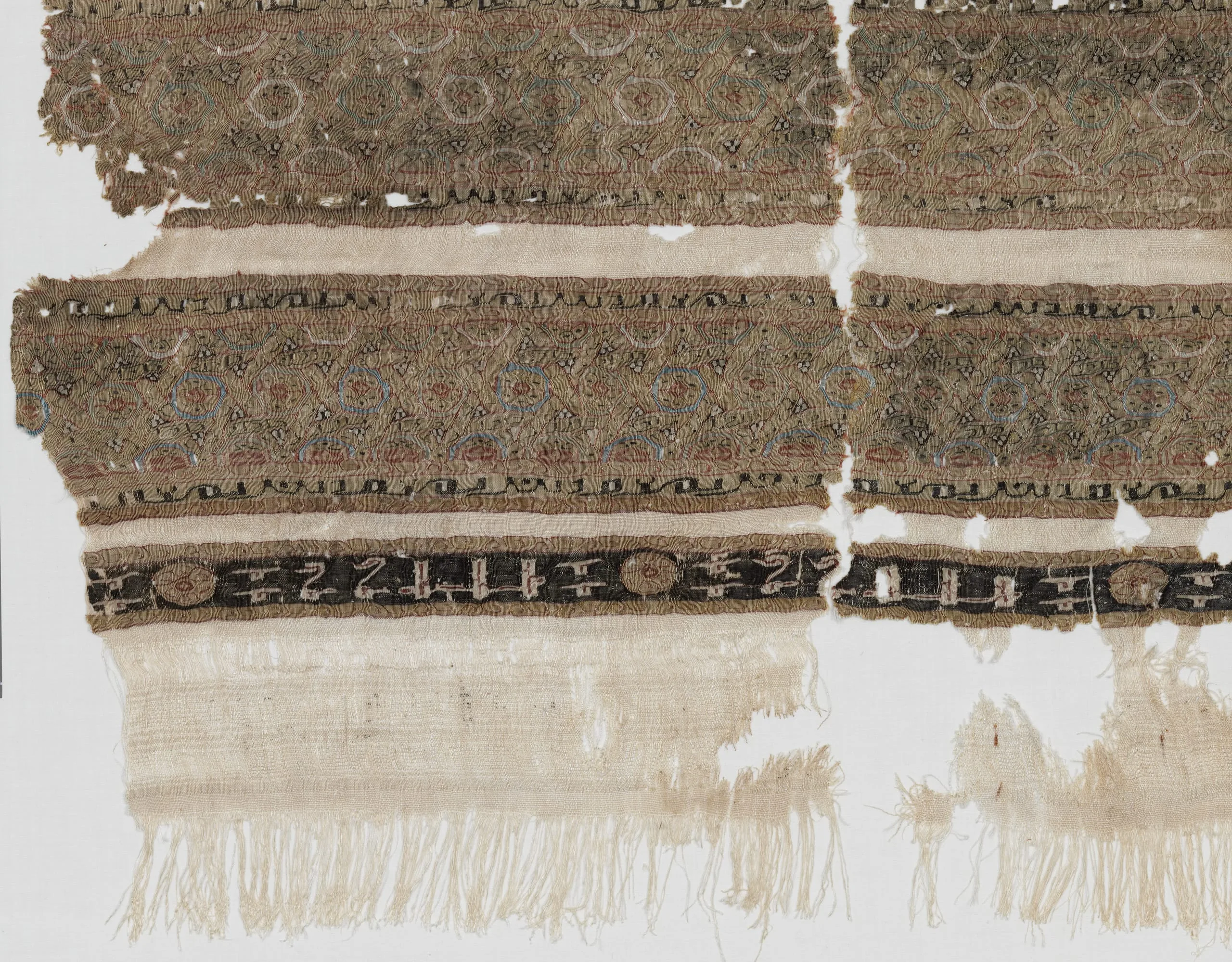 - Textile comprising 4 fragments: 33 5/8 × 33 1/4 in. (85.41 × 84.46 cm)