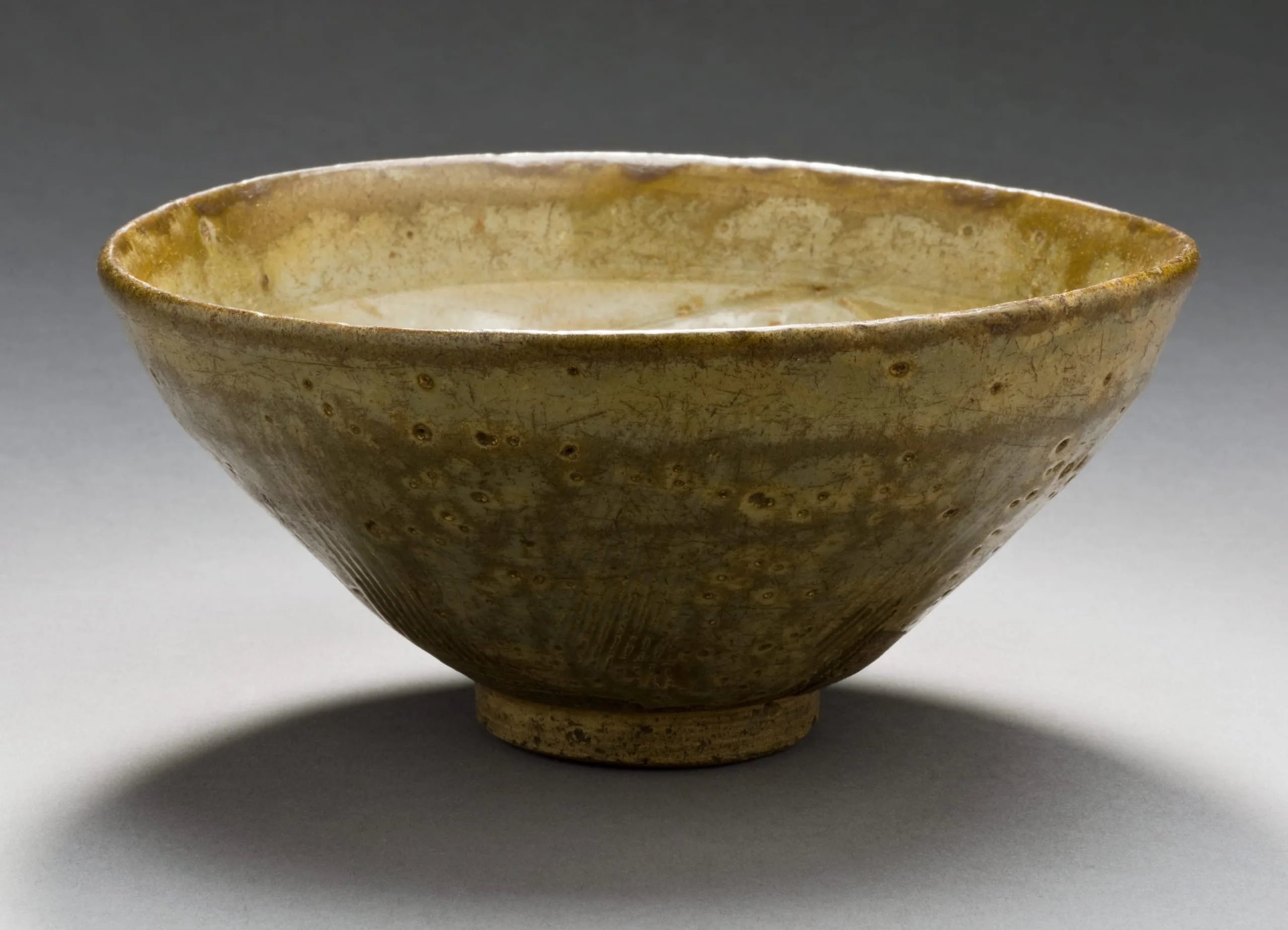 - Buncheong ware; Wheel-thrown stoneware with with incised decoration, slip, and pale green glaze