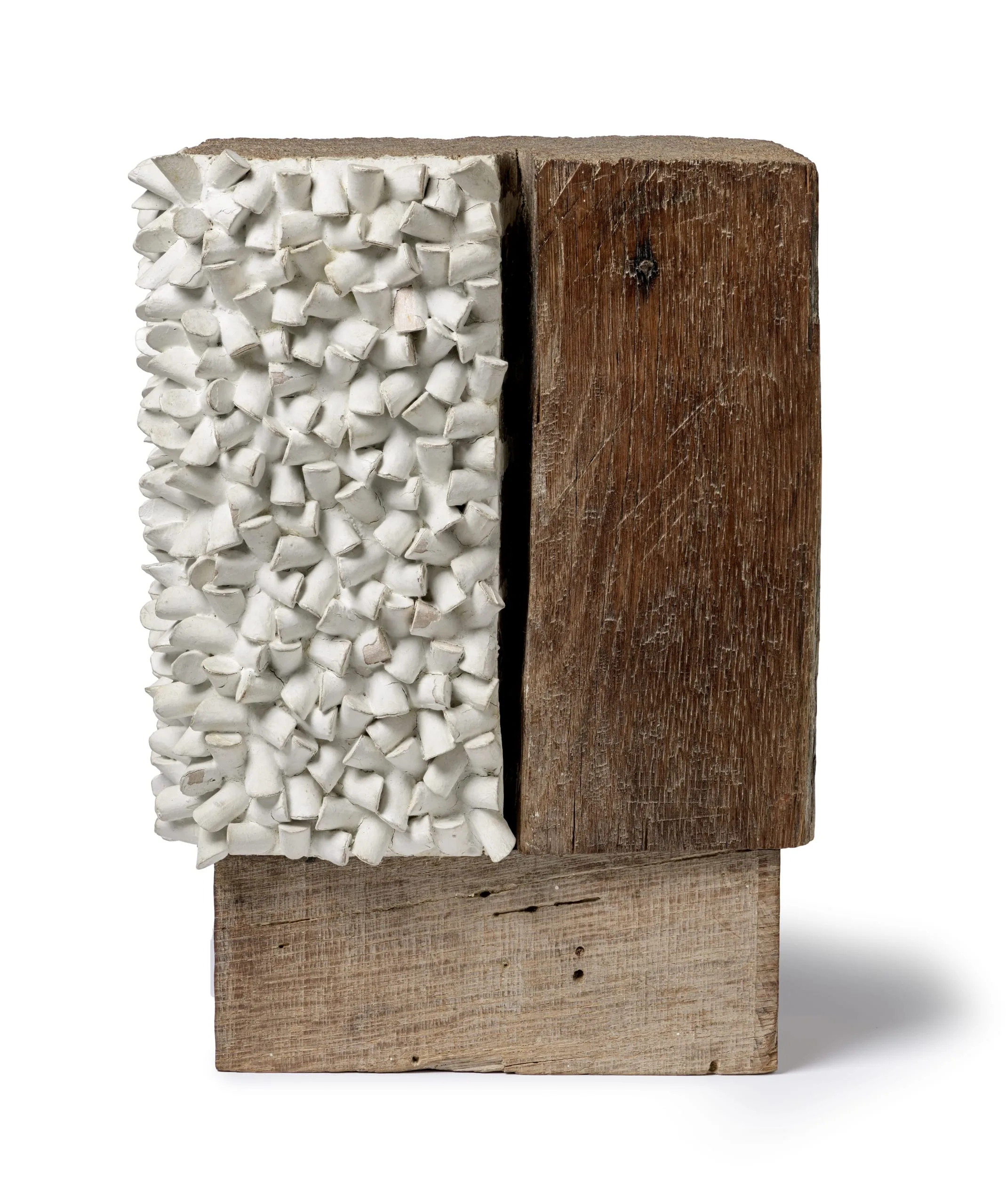 Sérgio Camargo's profound concern with the relationship of opposites finds full expression in these delicate wood constructions: plane and volume, stasis and movement, light and shadow are all brilliantly articulated. Camargo is one of Brazil's most important abstractionists, known for exuberant reliefs of cylindrical modules in painted wood that blur the boundary between systematic abstraction and organic form. Born in Rio de Janeiro, Camargo moved to Buenos Aires at sixteen; there he studied with the highly influential artist Lucio Fontana (1899–1968) and was exposed to the Argentine constructivist movements of the 1940s. At eighteen he moved to Paris, where he frequented the studio of Constantin Brancusi (1876–1957). He returned to Brazil in 1953; this was the heyday of geometric art: artists' groups were formed, styles invented, and manifestos issued. Although Camargo did not belong to any group, the resurgence of abstraction in Europe and in his homeland had a decisive impact on his formal experimentation of the 1960s. Ilona Katzew, 2008