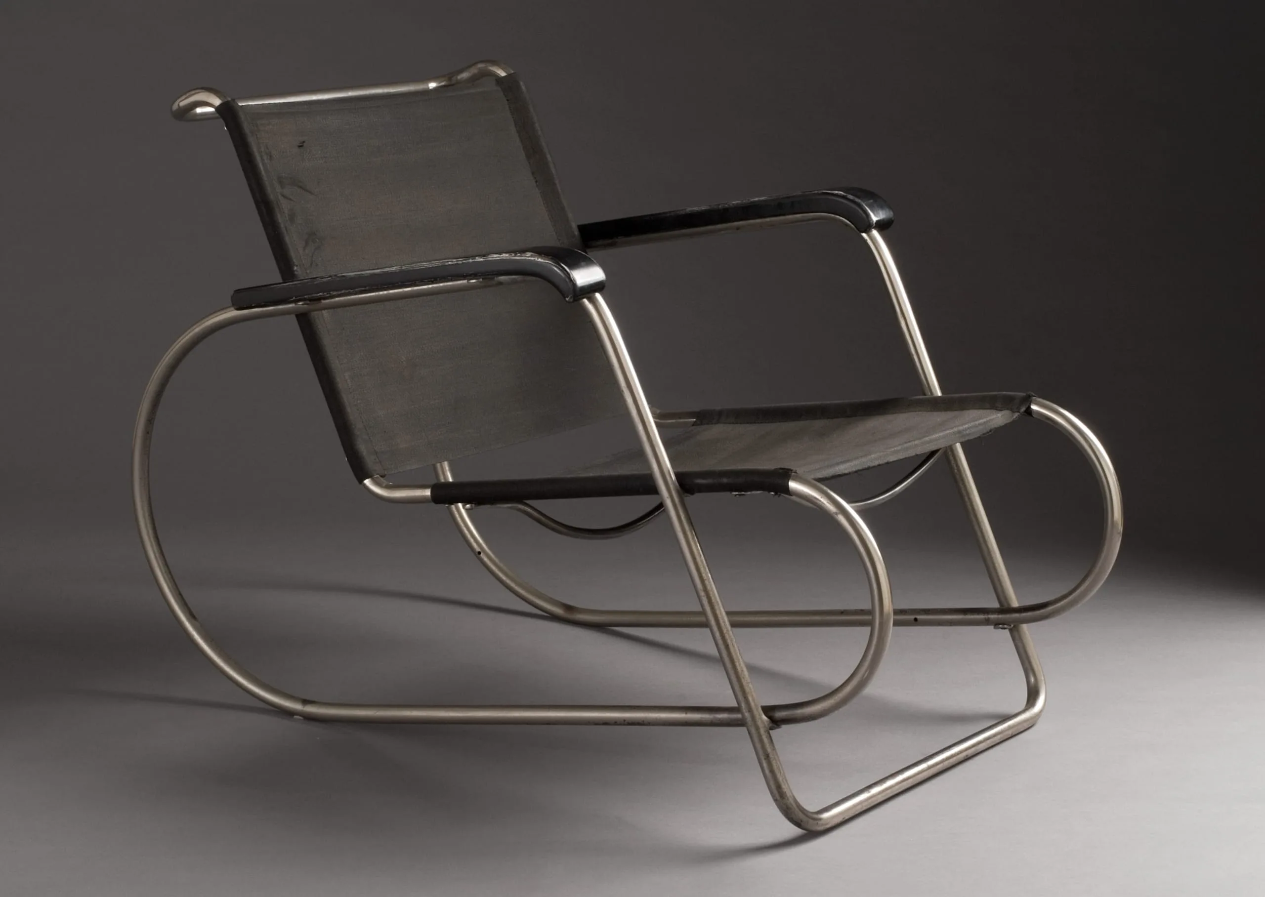 - Nickel-plated tubular steel, original "Eisengarn" (iron cloth), upholstery and wood
