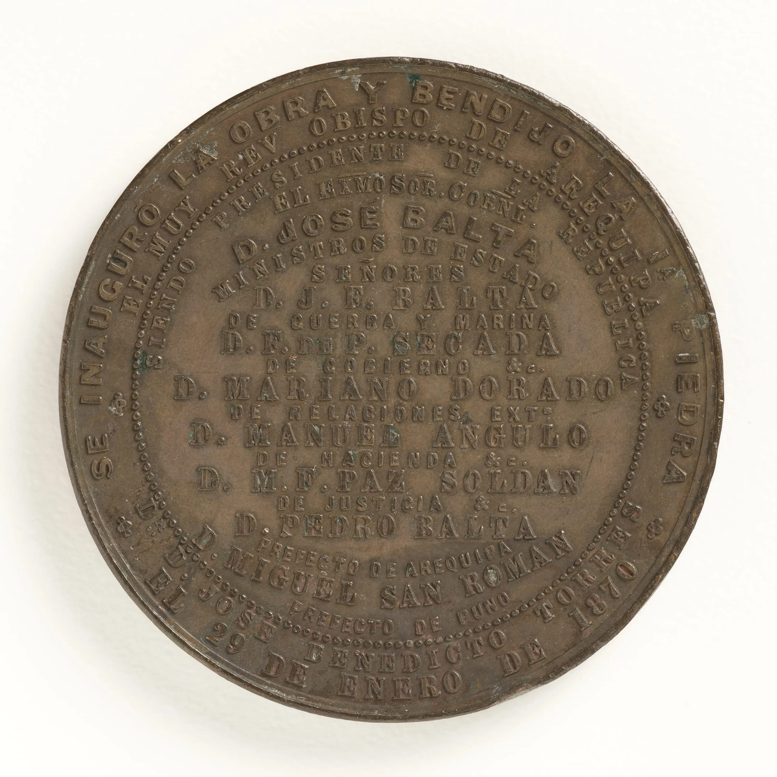 Medal commemorating the Peruvian Railway/Henry Meiggs: the line from Arequipa to Puno1870