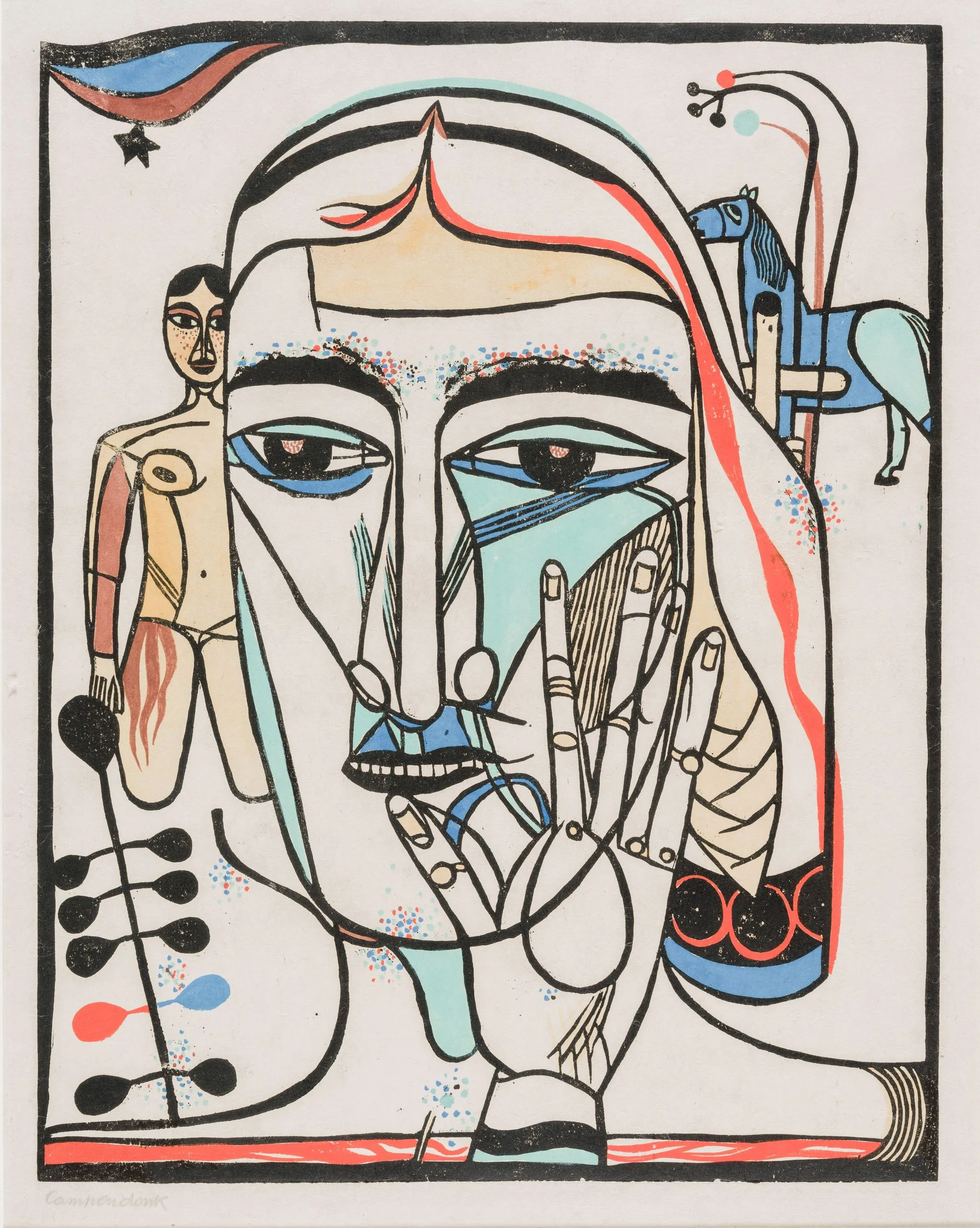 - Hand-colored woodcut