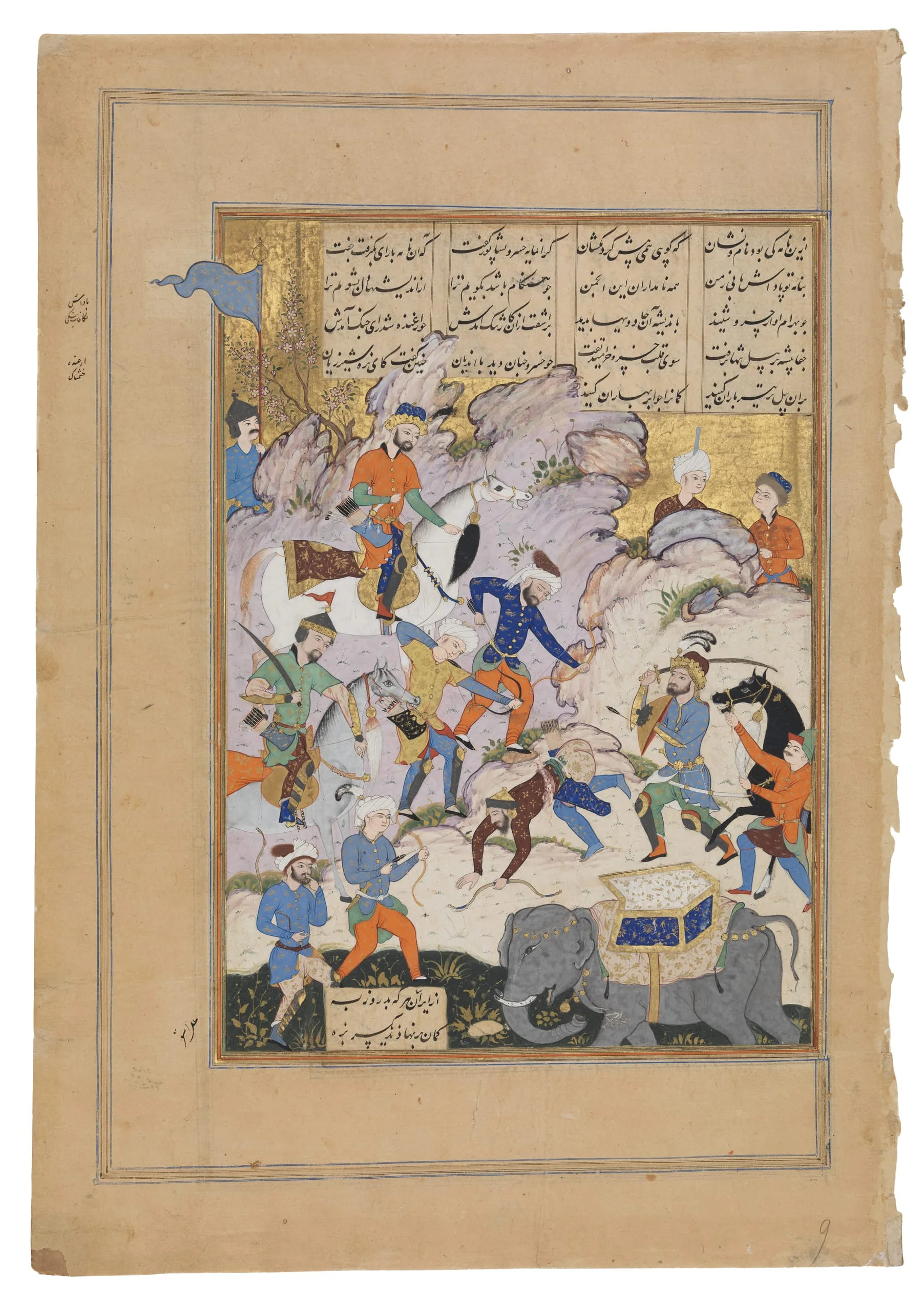 - The Combat of Khusraw Parviz and Bahram Chubina, Page from a Manuscript of the Shahnama (Book of Kings) of Firdawsi for Shah Isma'il II (r. 1576-77)