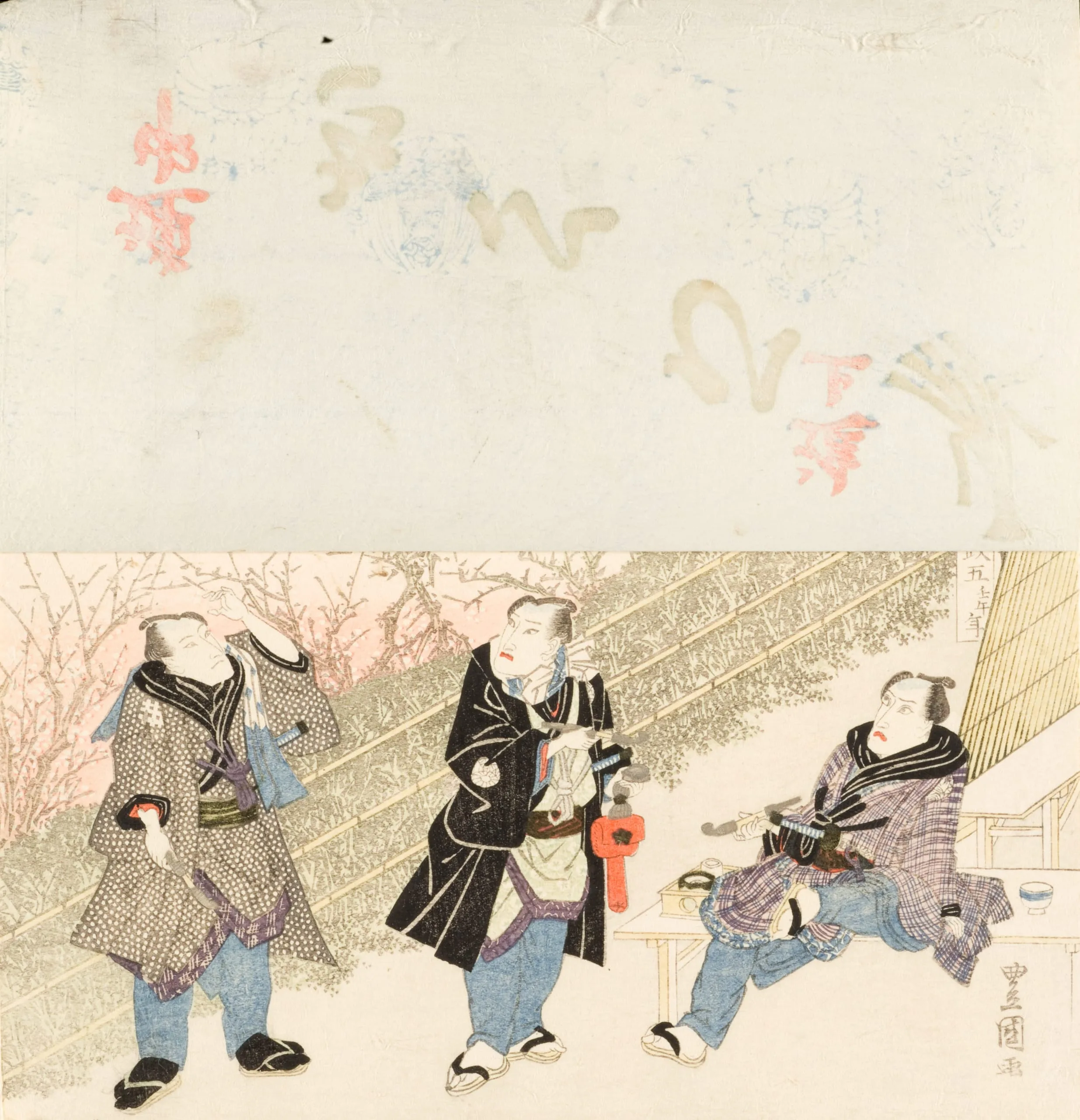- Color woodblock print; surimono with attachment