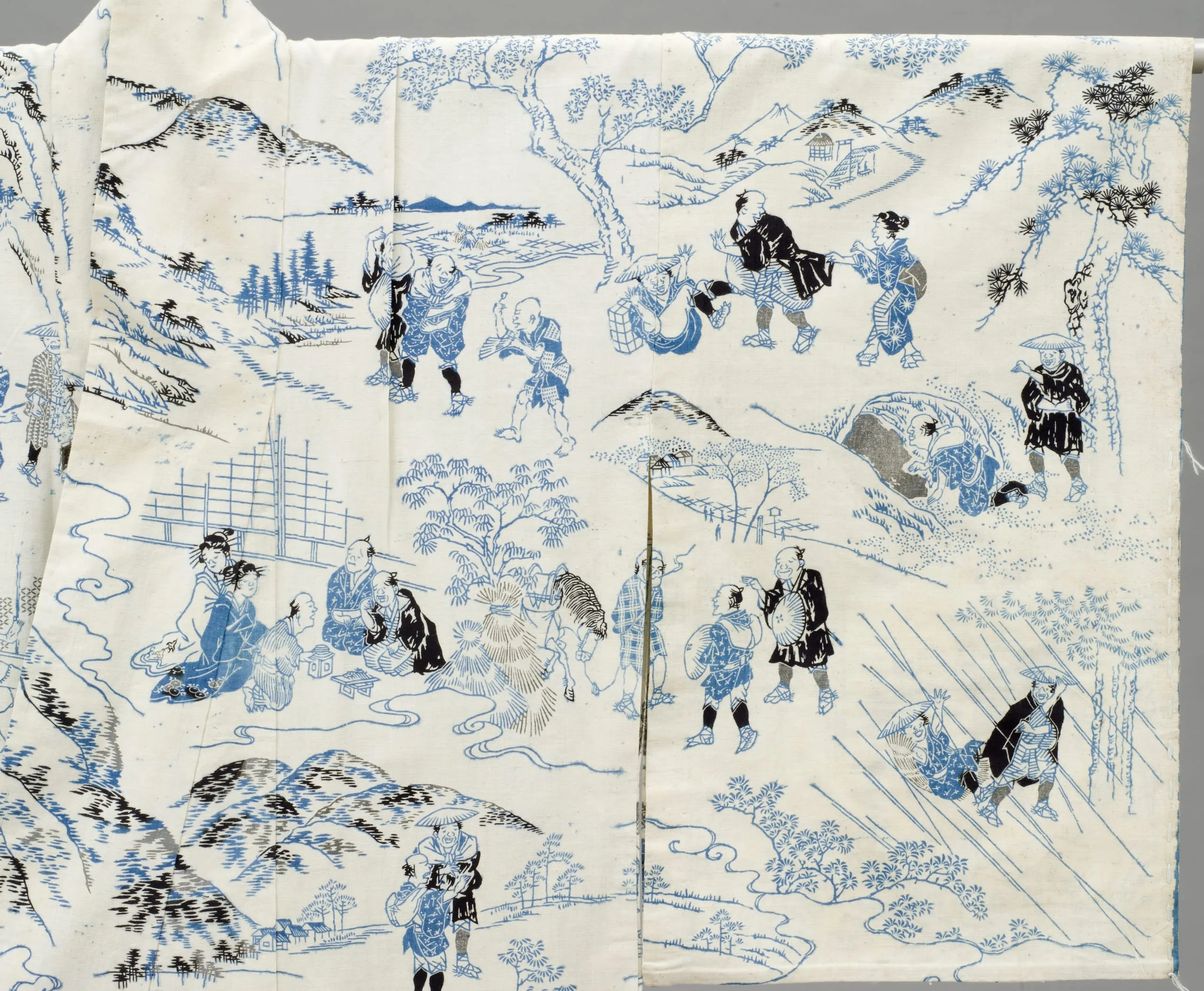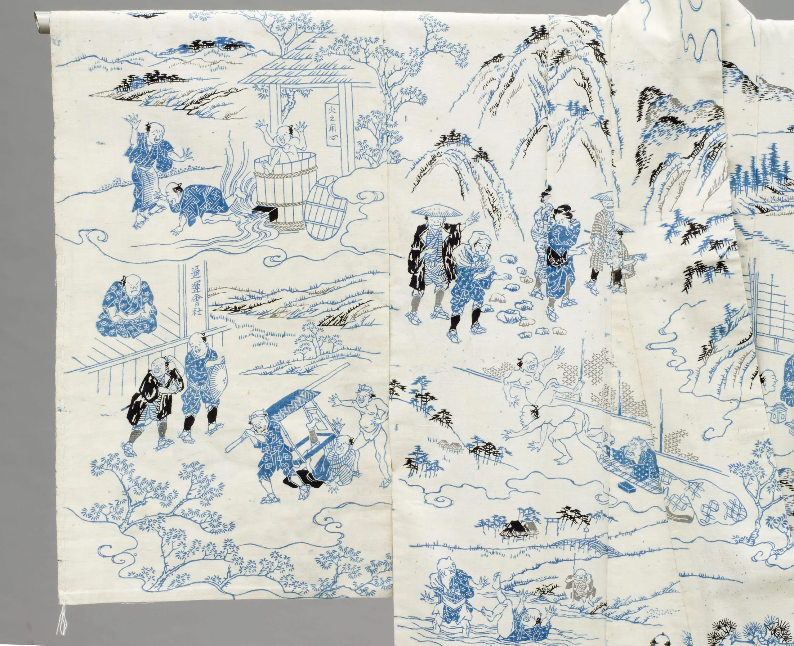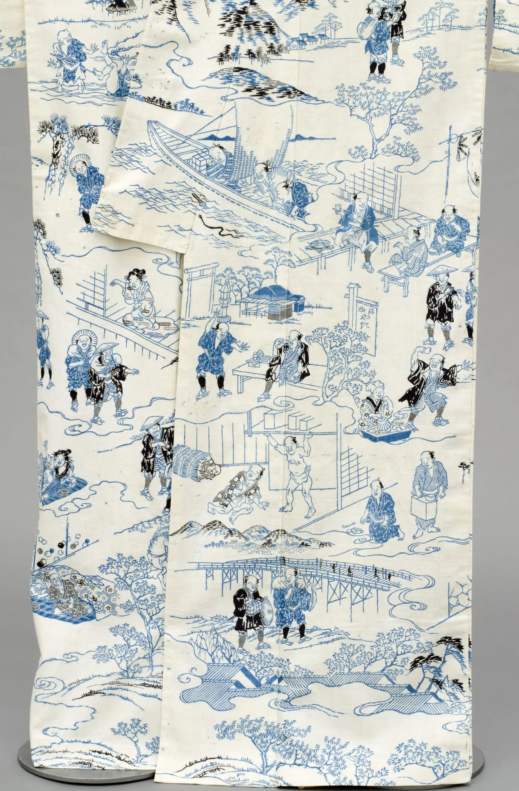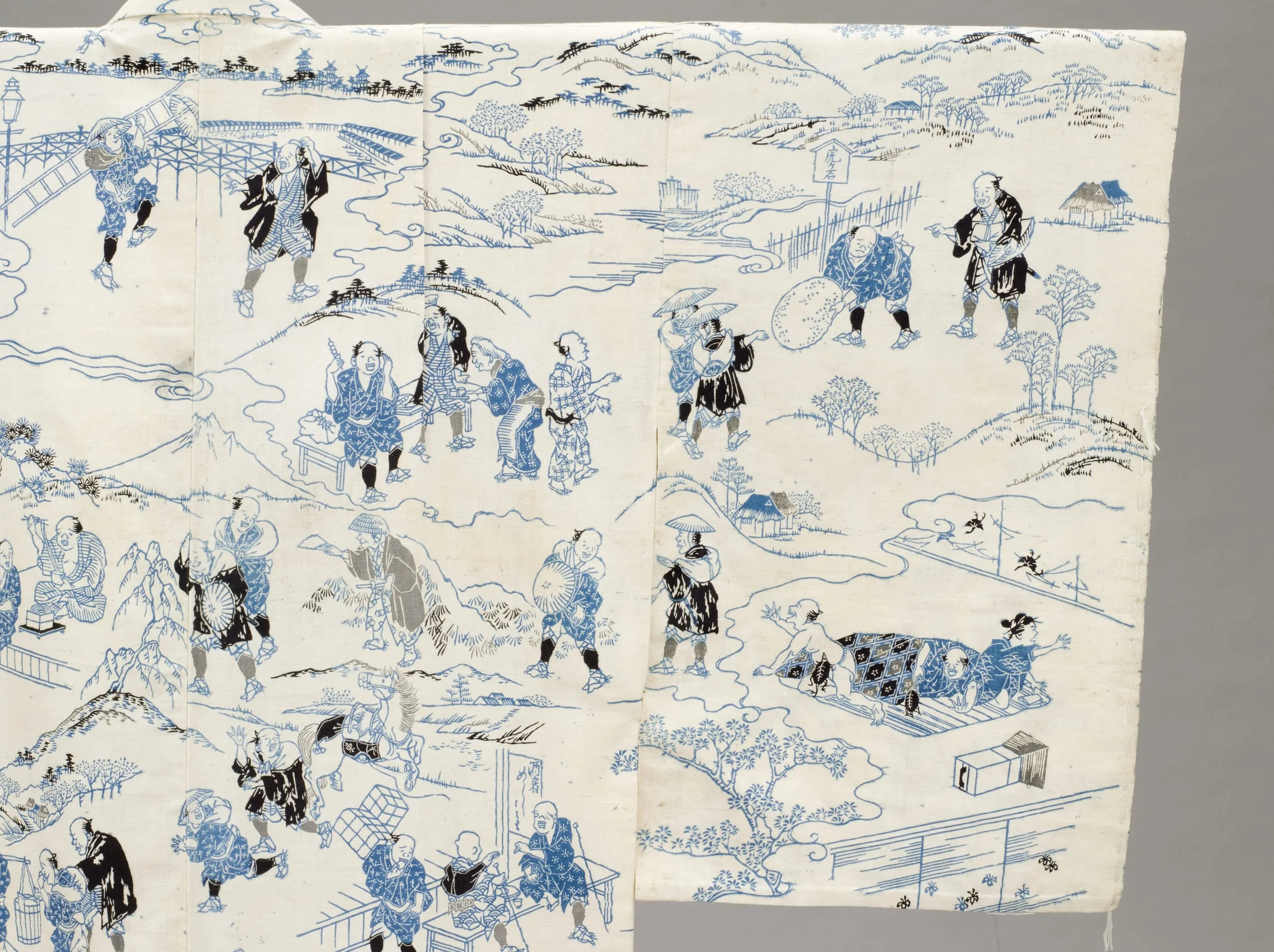 - Woman's Summer Kimono (Yukata) with Illustrations from the 1802 novel 'Hizakurige' (Shank's Mare) by Ikku Jipensha (1765-1831)