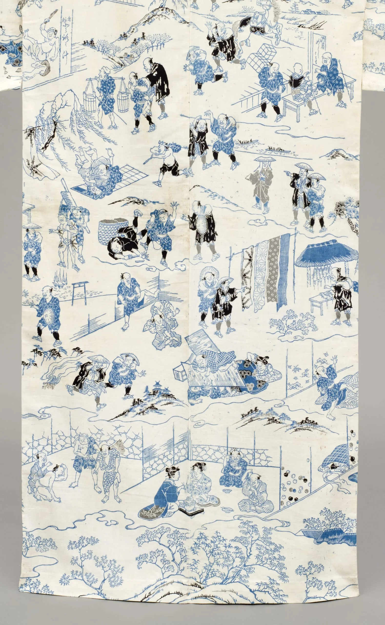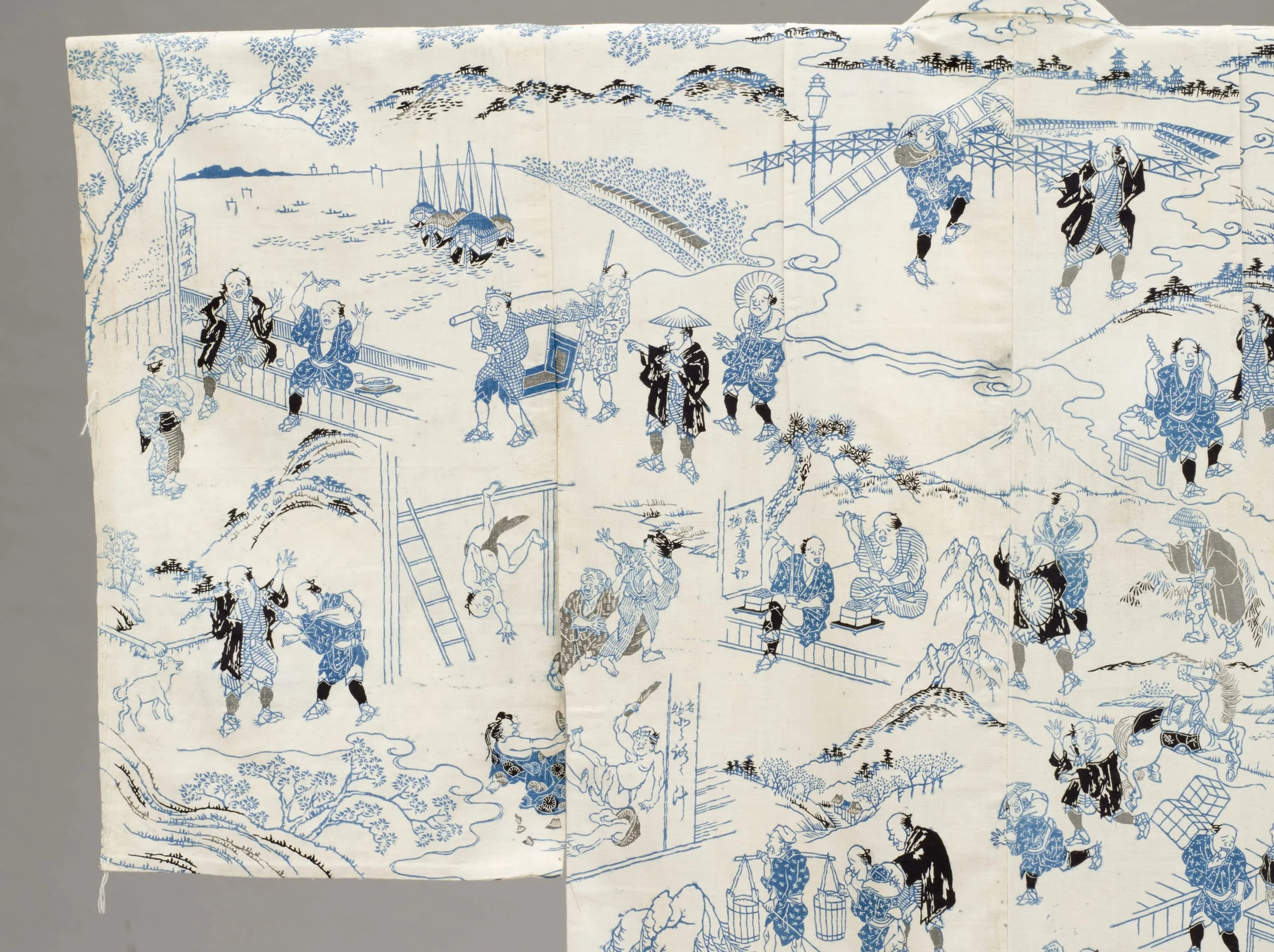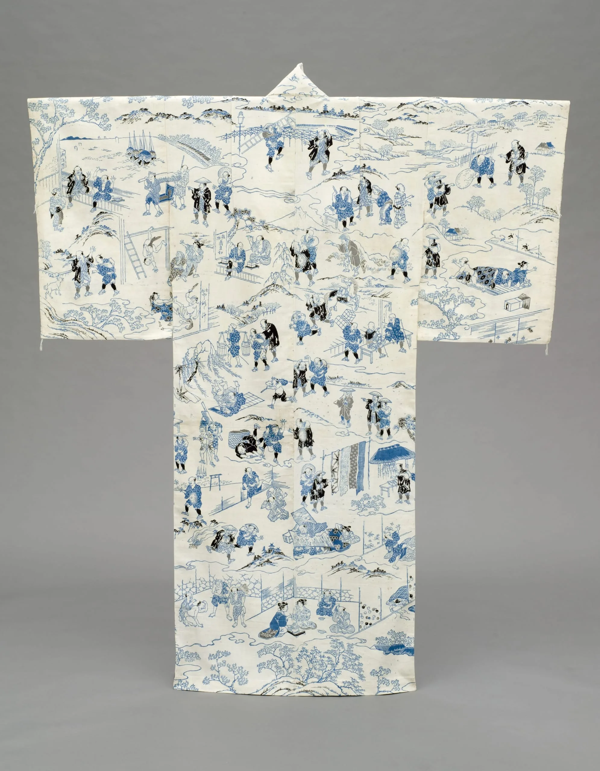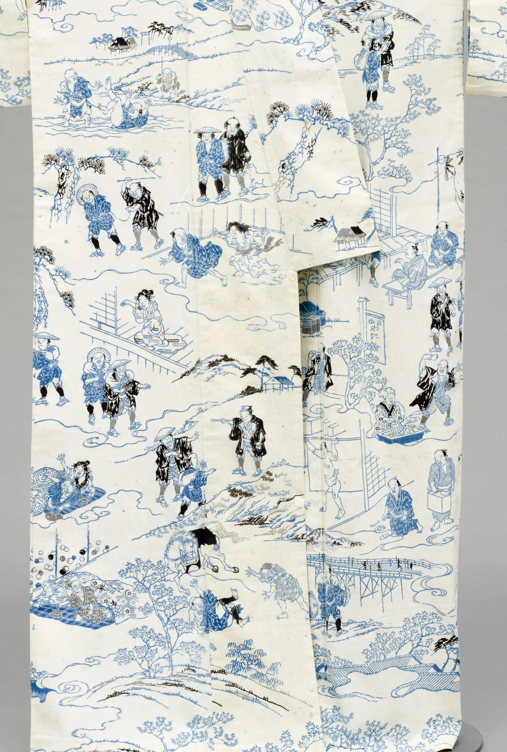- Woman's Summer Kimono (Yukata) with Illustrations from the 1802 novel 'Hizakurige' (Shank's Mare) by Ikku Jipensha (1765-1831)