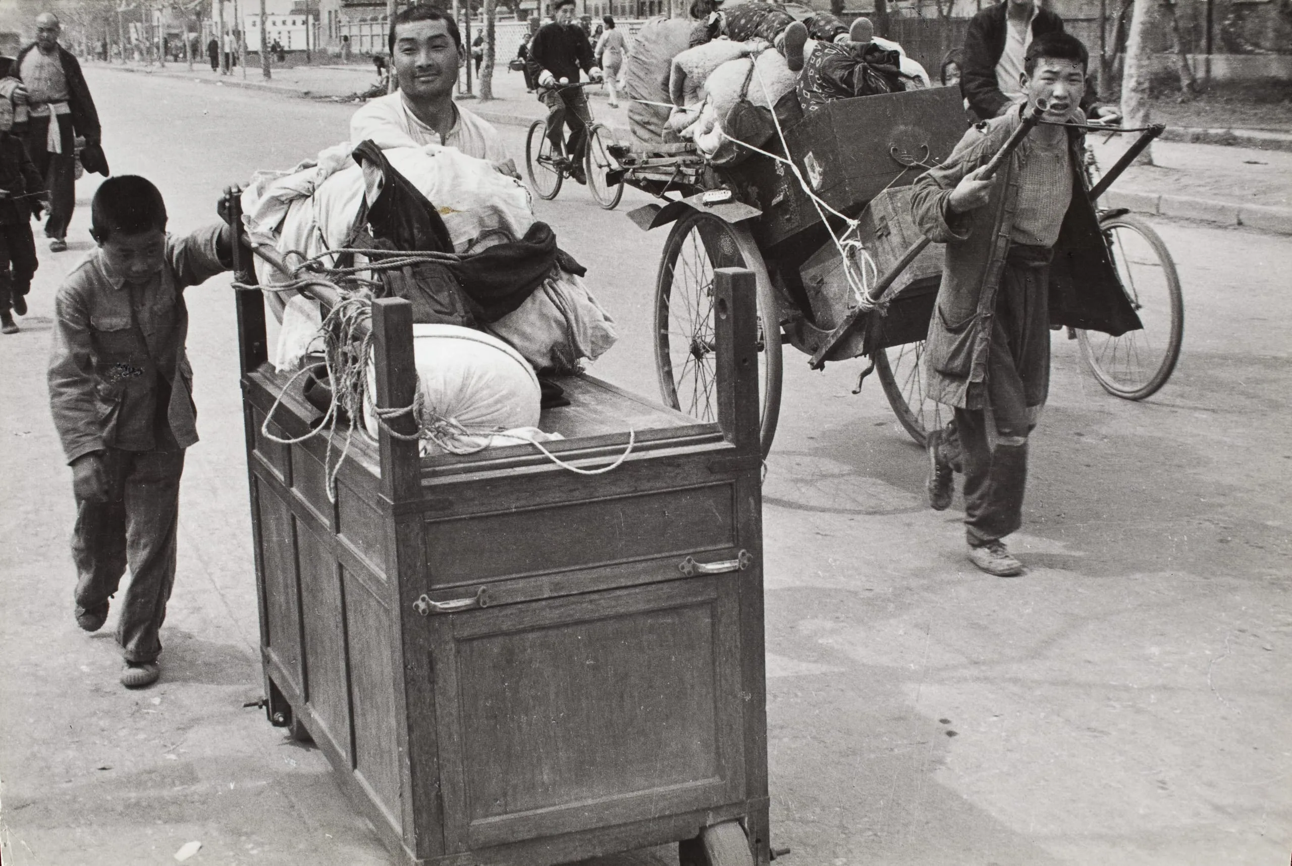 - China (Nanking. A refugee's cart piled high with family possessions...)