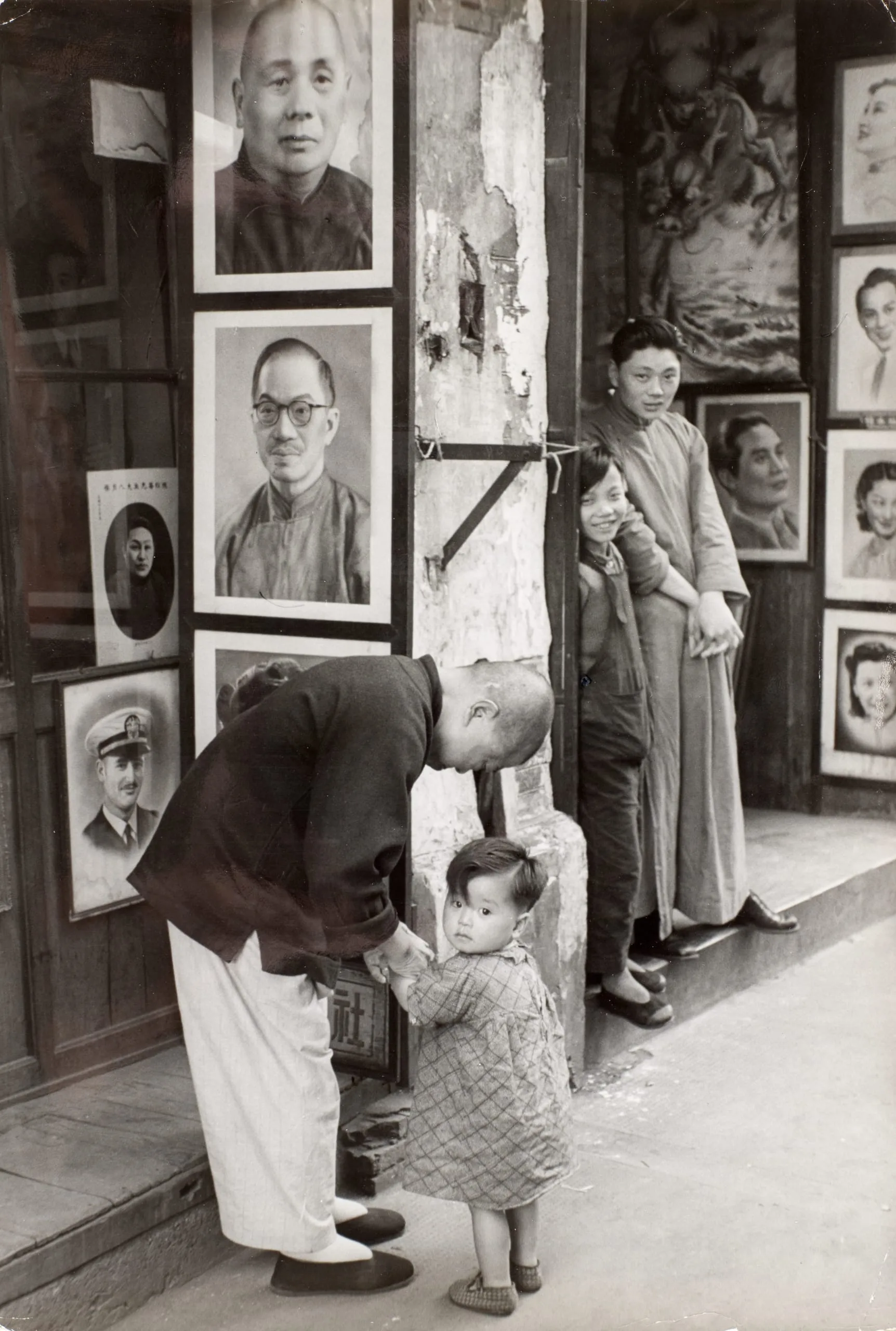 - Shanghai (A Father and child outside a photographer's shop, where the pictures on display are enlarged a little bigger than life-size.)