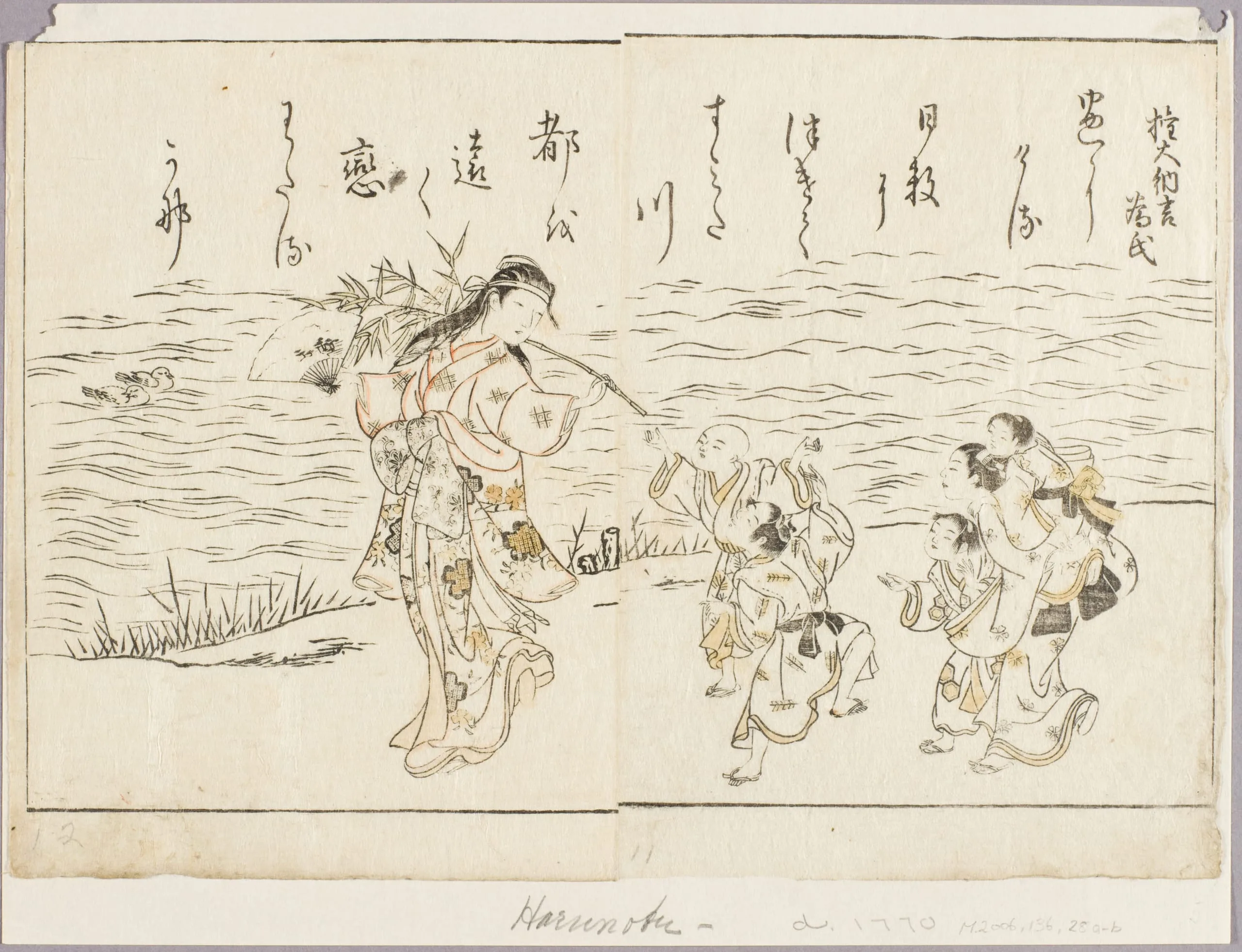 - Pair of hand-colored woodblock print pages from a book
