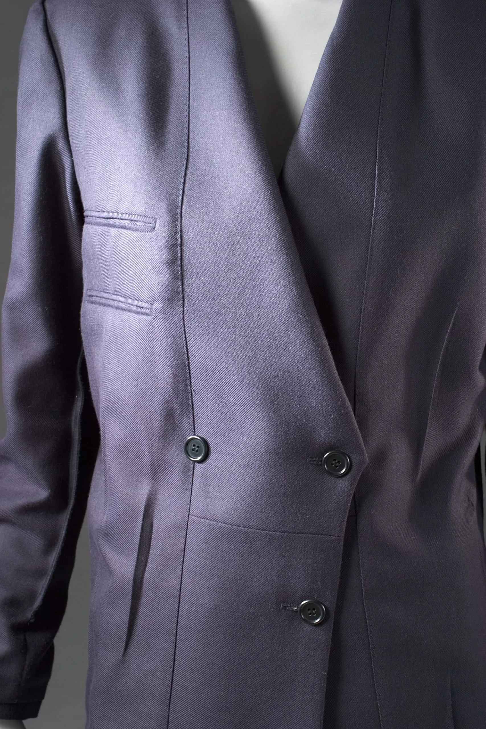- Reversible jacket: polyester/wool twill, rayon twill, polished cotton plain weave; pants: polyester/wool twill