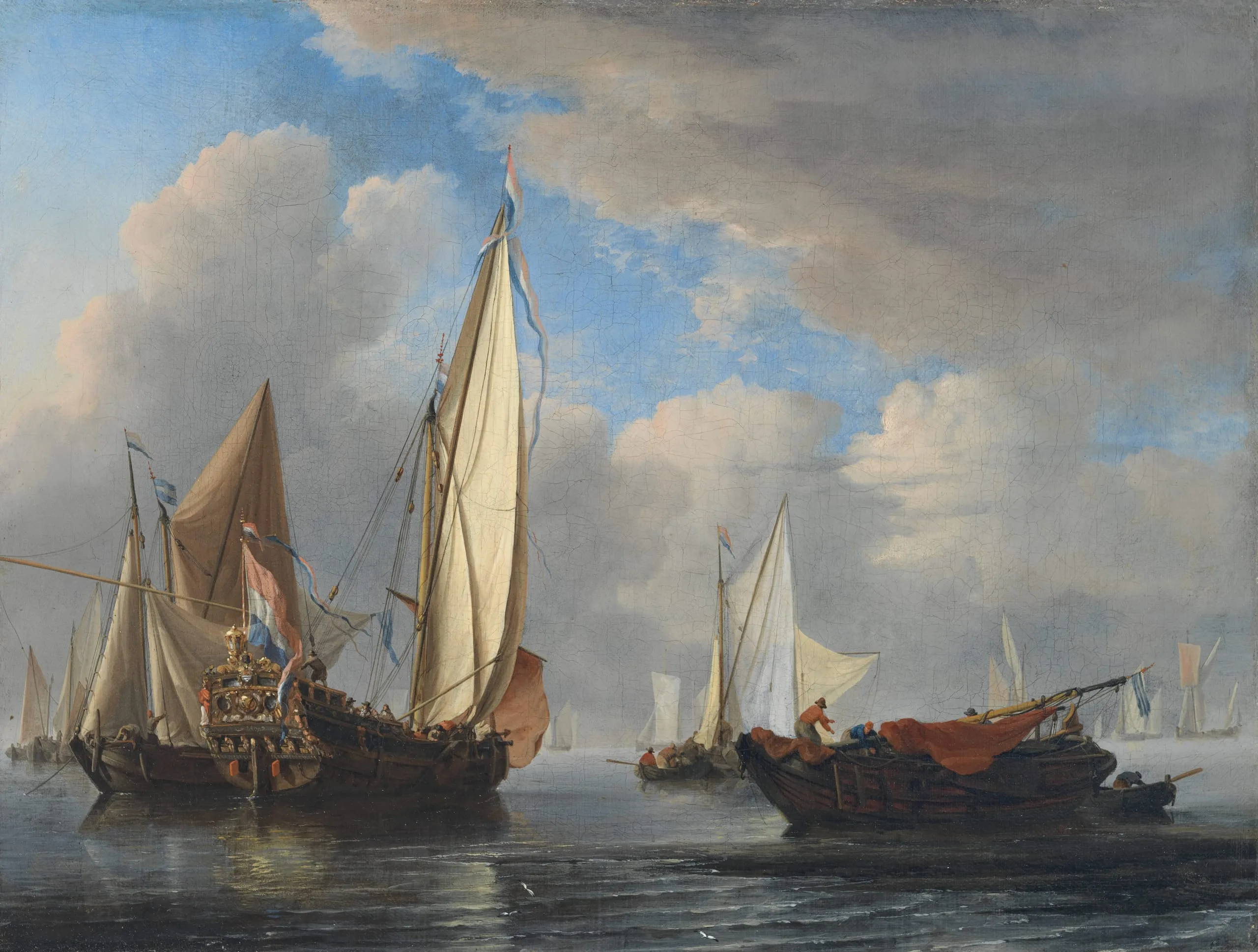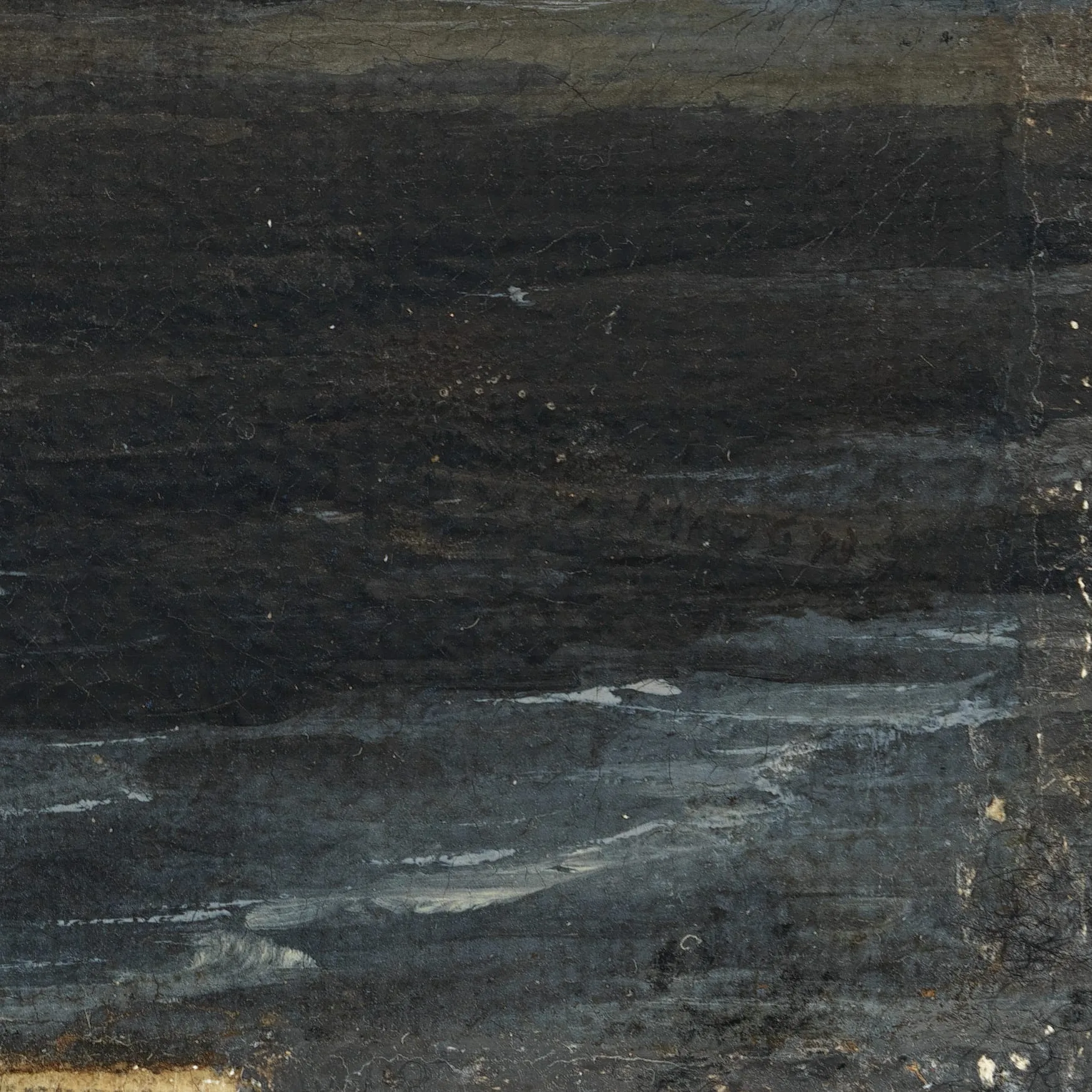 (4) The entry for the painting in the 1958 sale catalogue incorrectly states that the painting was "From the Collection of Joseph Bernhard," rather than Joseph Barchard. According to an annotation made by Ellis K. Waterhouse on p. 16 of the Getty Research Institute’s copy of the 2 July 1958 sale, "Mainly bt. by Joseph Barchard, a client of Nieuwenhuys at the beginning of the 19th century. He bequeathed them to Francis Barchard, thence to Elphinstone Barchard, great uncle of [?] Francis Barchard whose widow is the vendor [Mrs. Maud Barchard]. (He died ca. 1932.)" It was apparently the elder Francis Barchard who lent the painting to the Royal Academy of Arts, London, in 1875. According to Mireur 1911–12 (2001), vol. 7, p. 312, in 1828 (sale not identifiable) J[oseph] Barchard sold another painting, Un calme, which had been in the sale of the duc de Choiseul in 1772 and described by Mireur, p. 311, as "Un calme. Vers la droite, un vaisseau navigue sous des oiles de misaine et de hune; une barque est a gauche et plus loin, au fond, on apercoit deux fregates, un sloop et quelques batiments. Bois (23.6 × 27.9)."