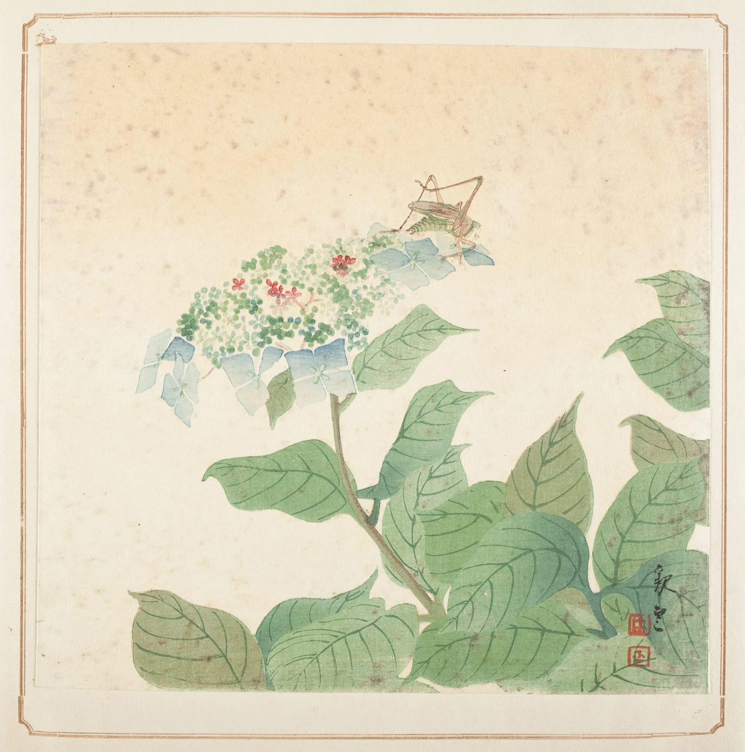 Grasshopper on Hydrangea