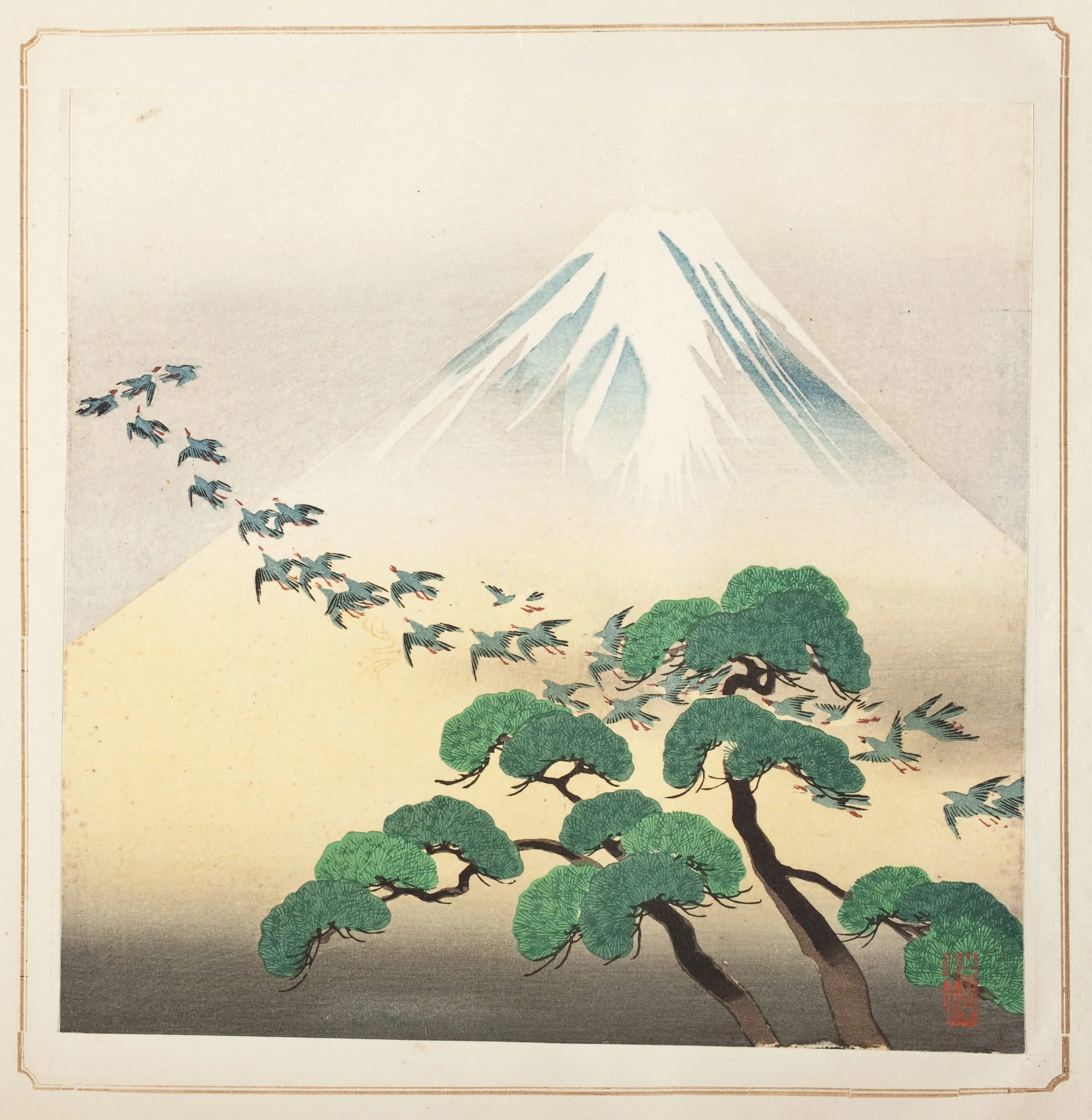 Plovers, Pine, and Mt. Fuji