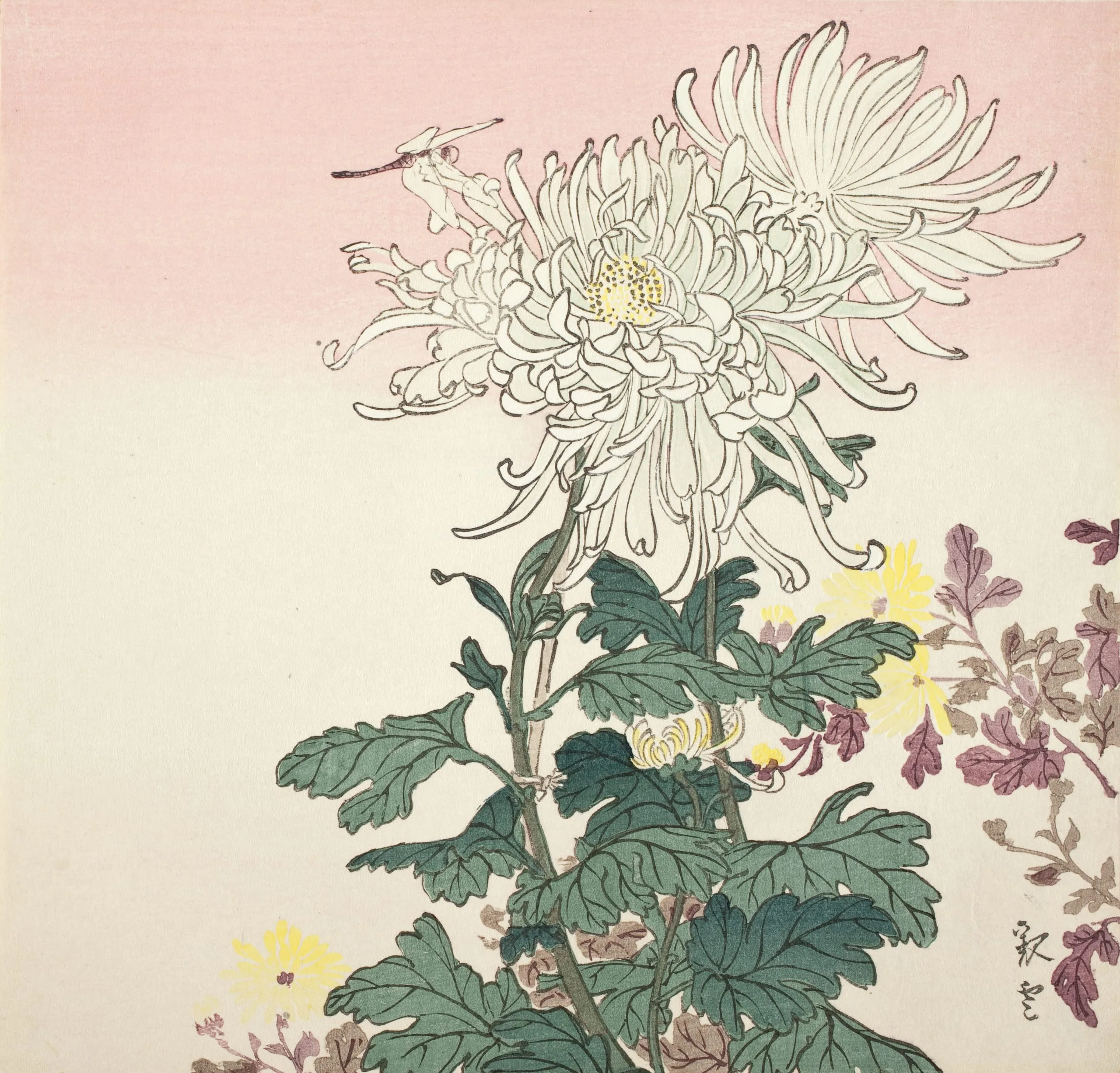 - Chrysanthemums and Dragonfly