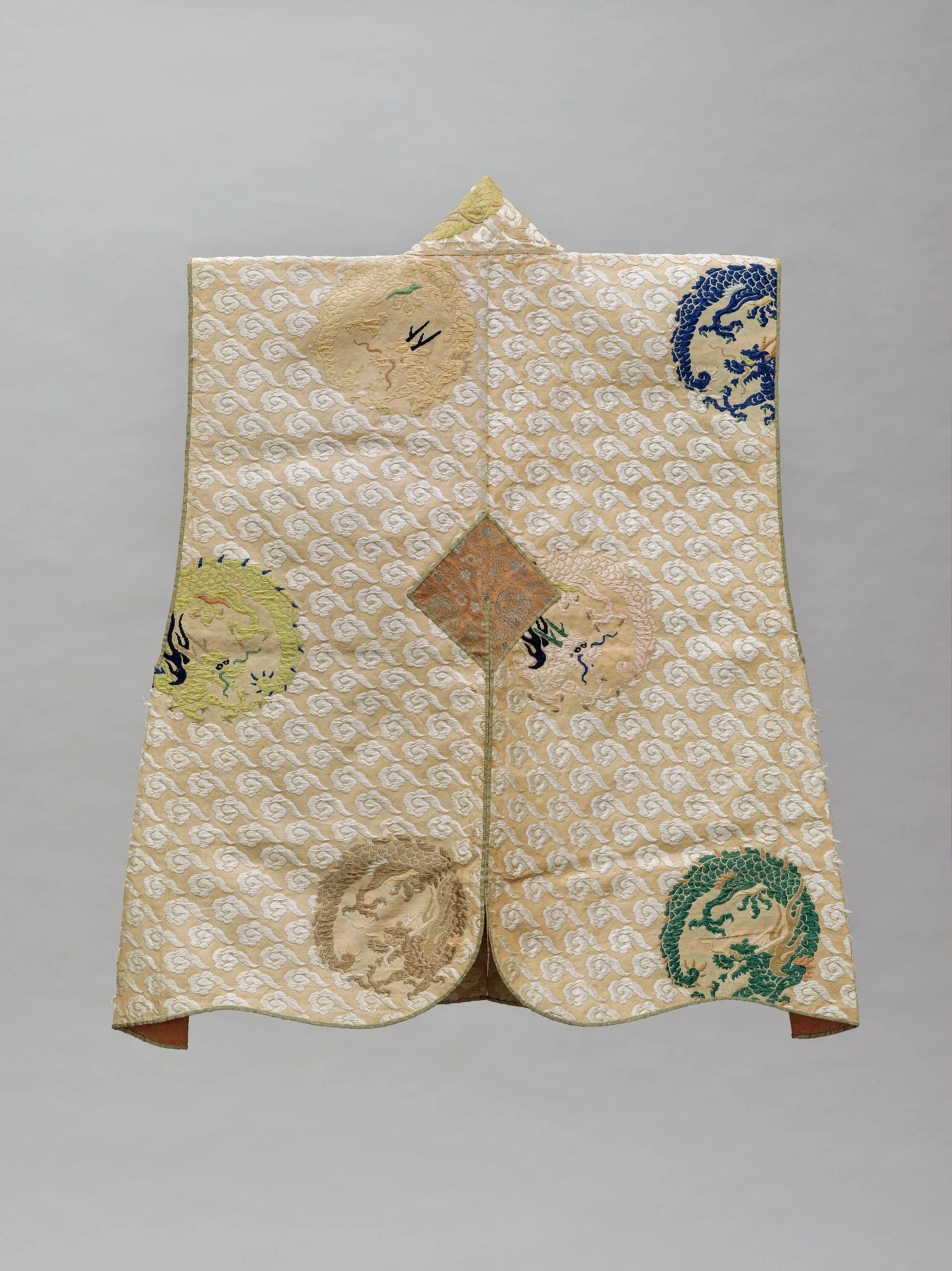 - Samurai-Class Man's Summer Formal Surcoat (jinbaori) with Dragon Roundels and Stylized Cloud Pattern