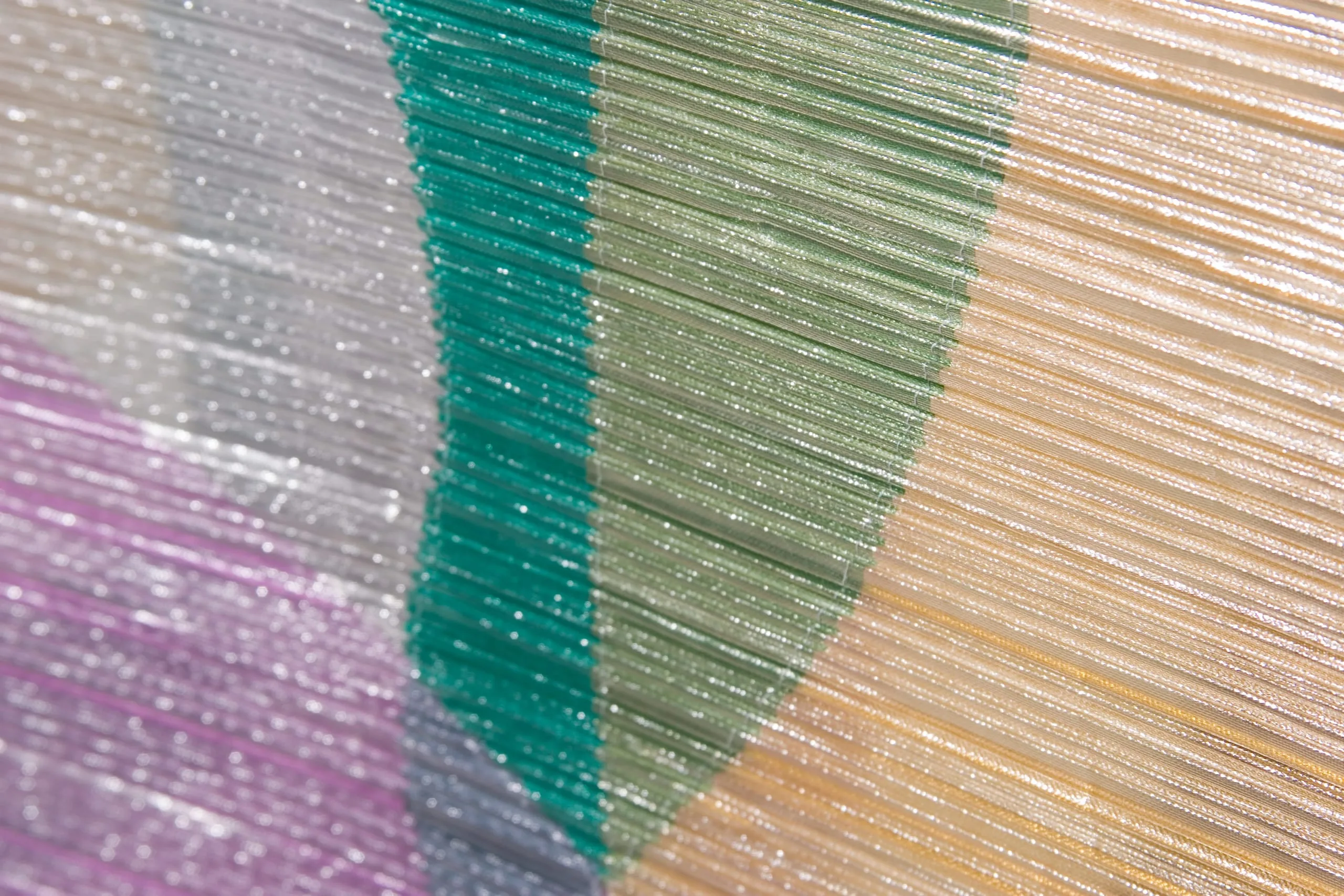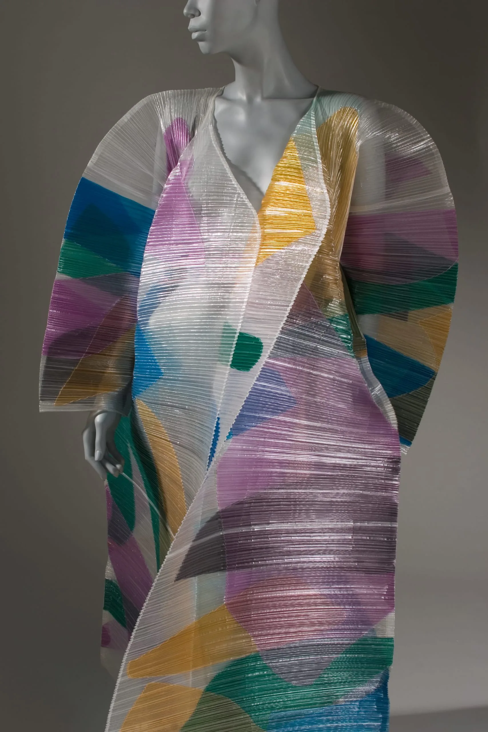 - Polyester plain weave; appliquéd and pleated and heat-and pressure-set
