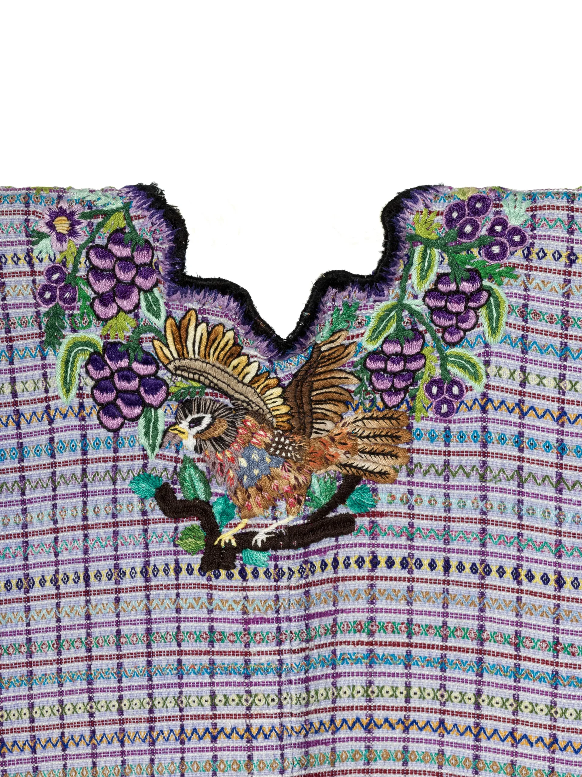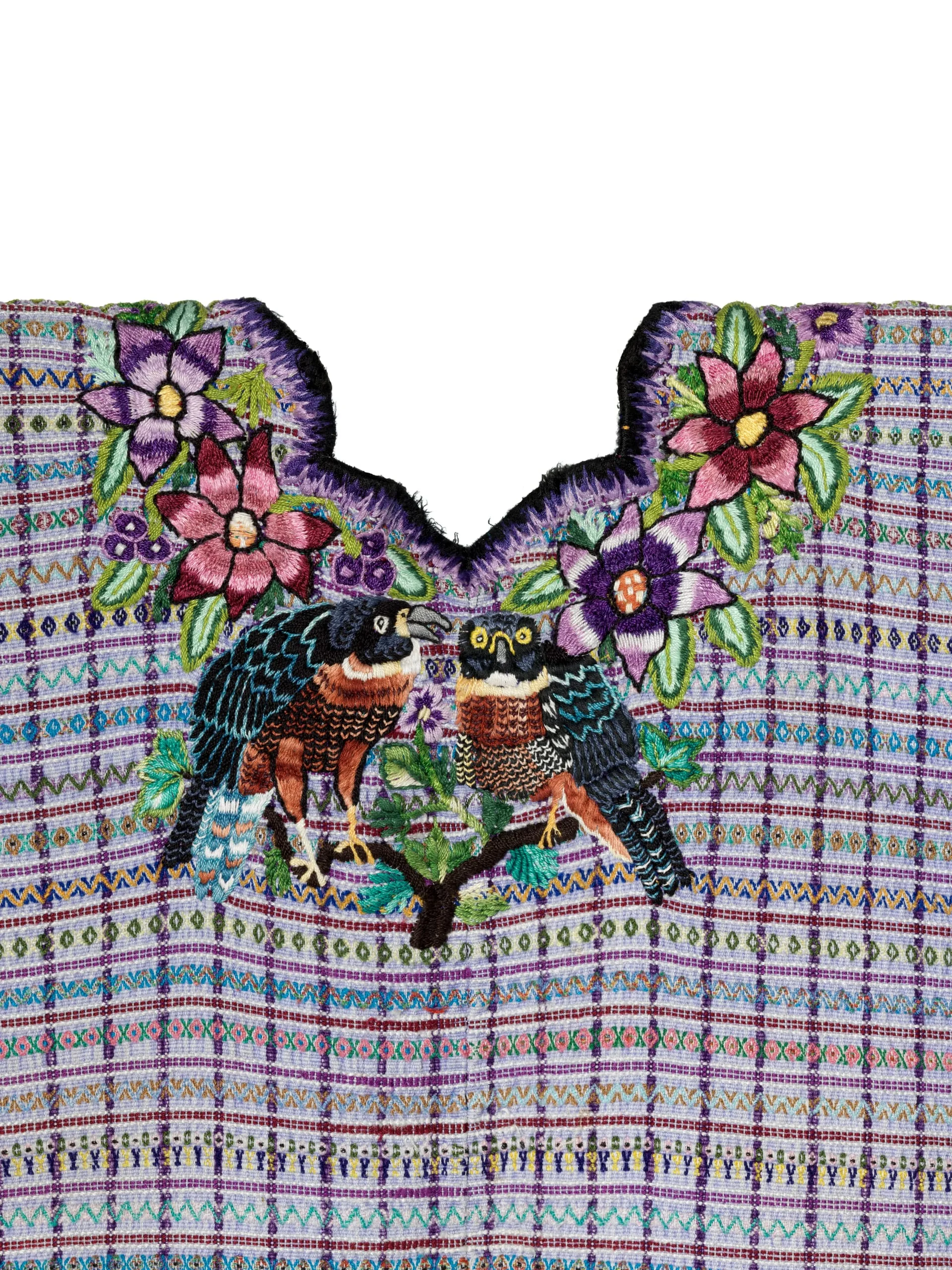 - Cotton and metallic plastic warp-faced plain weave with supplementary weft patterning, and rayon embroidery