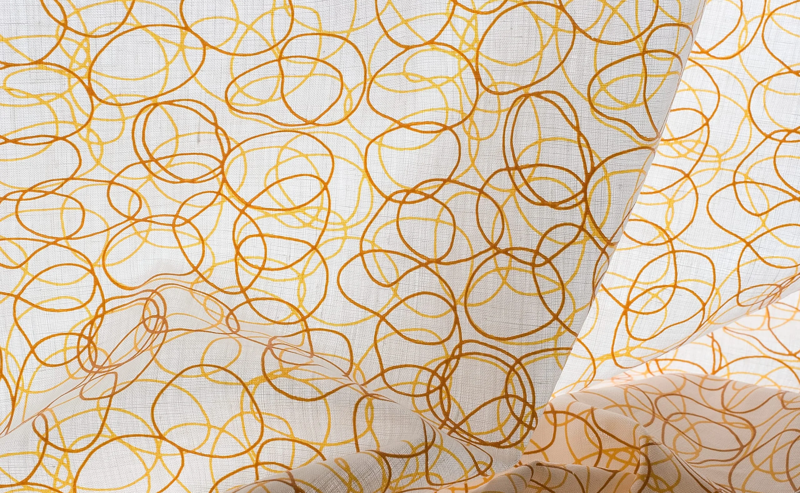 - Linen plain weave, hand screen-printed acrylic/silicone resin