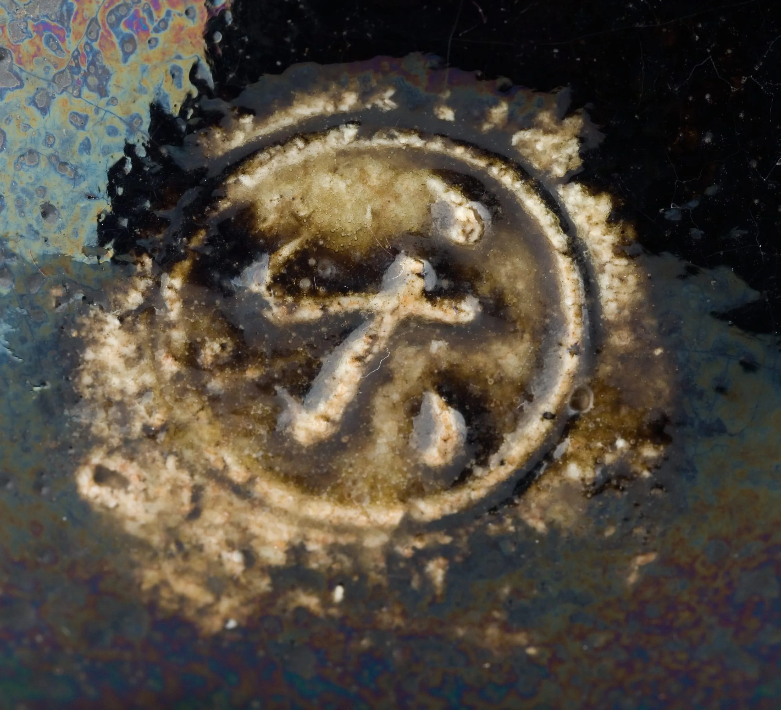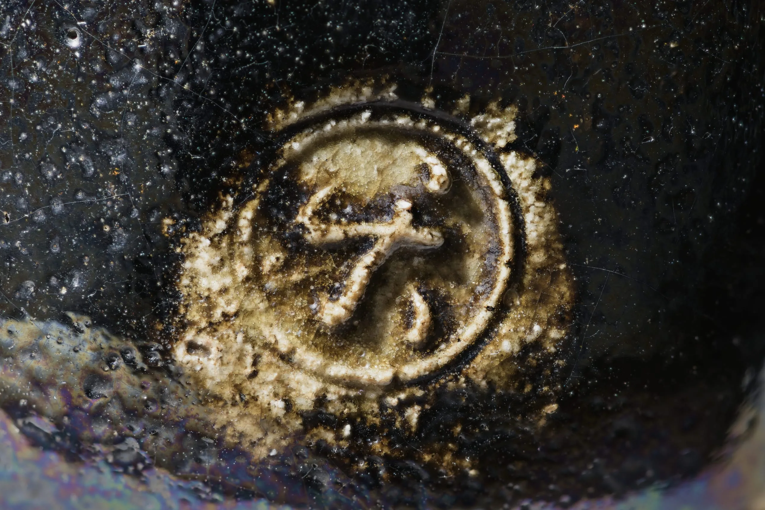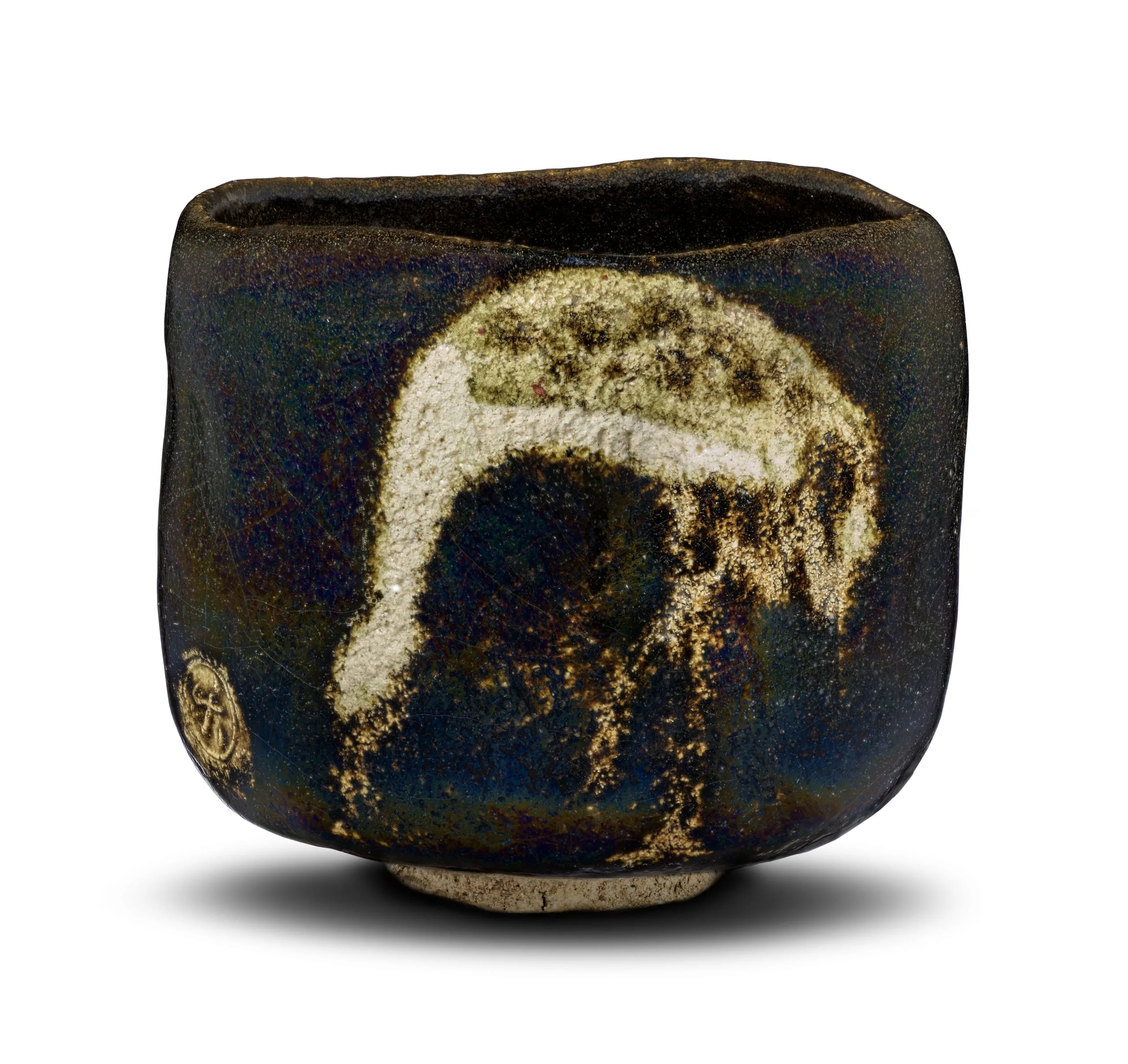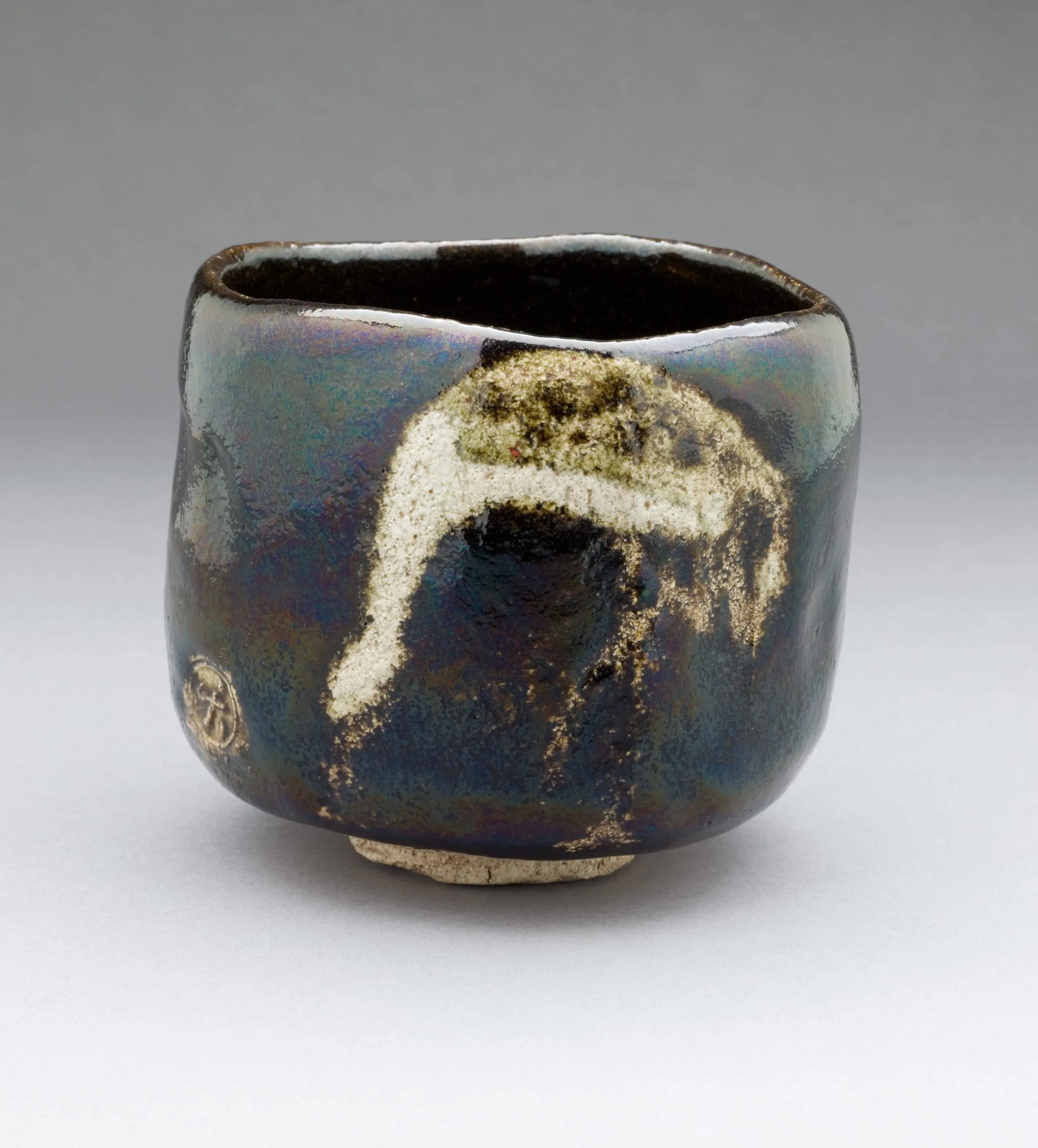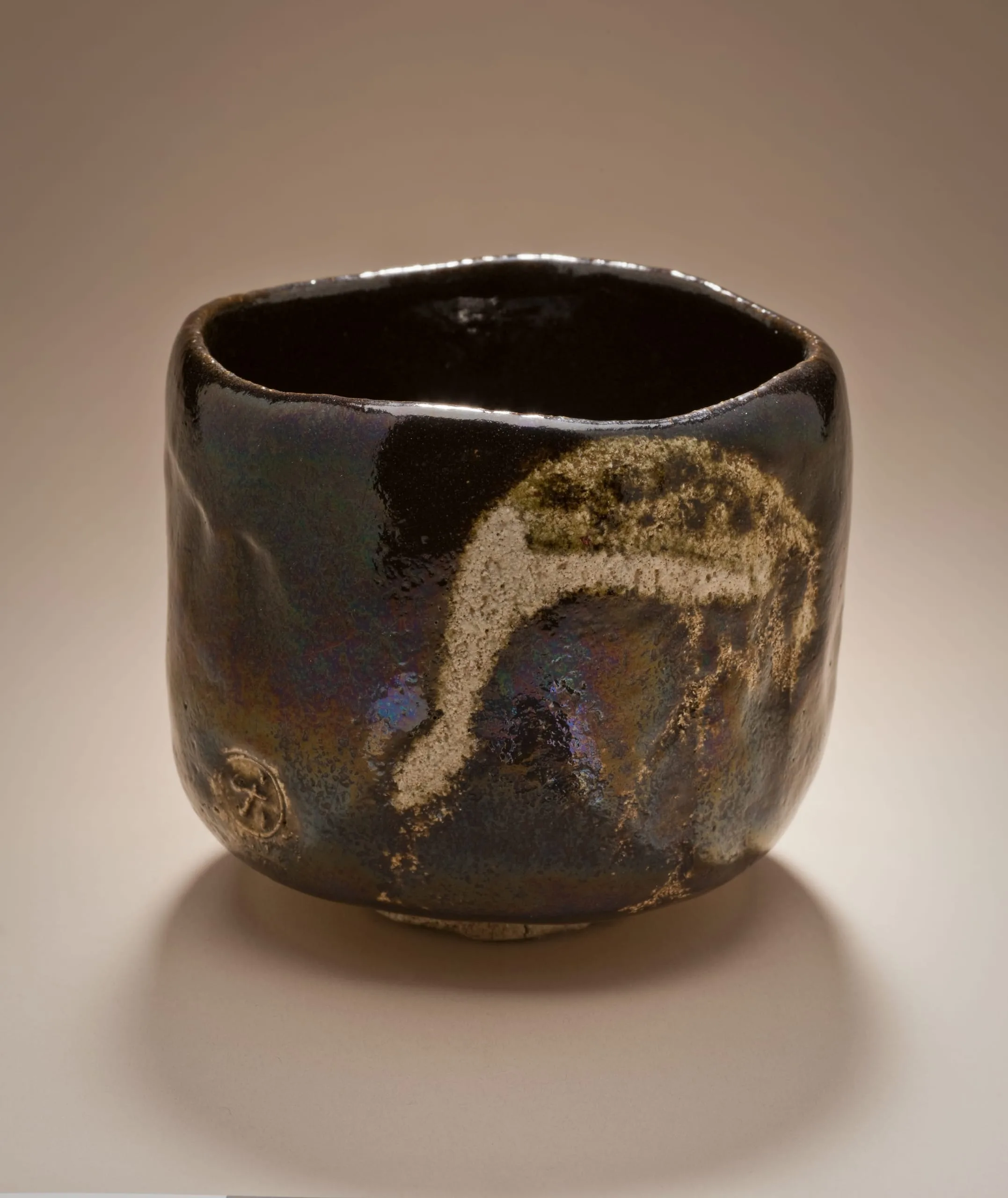 - Black Raku Teabowl with Crane Design, named 'Aged Pine'