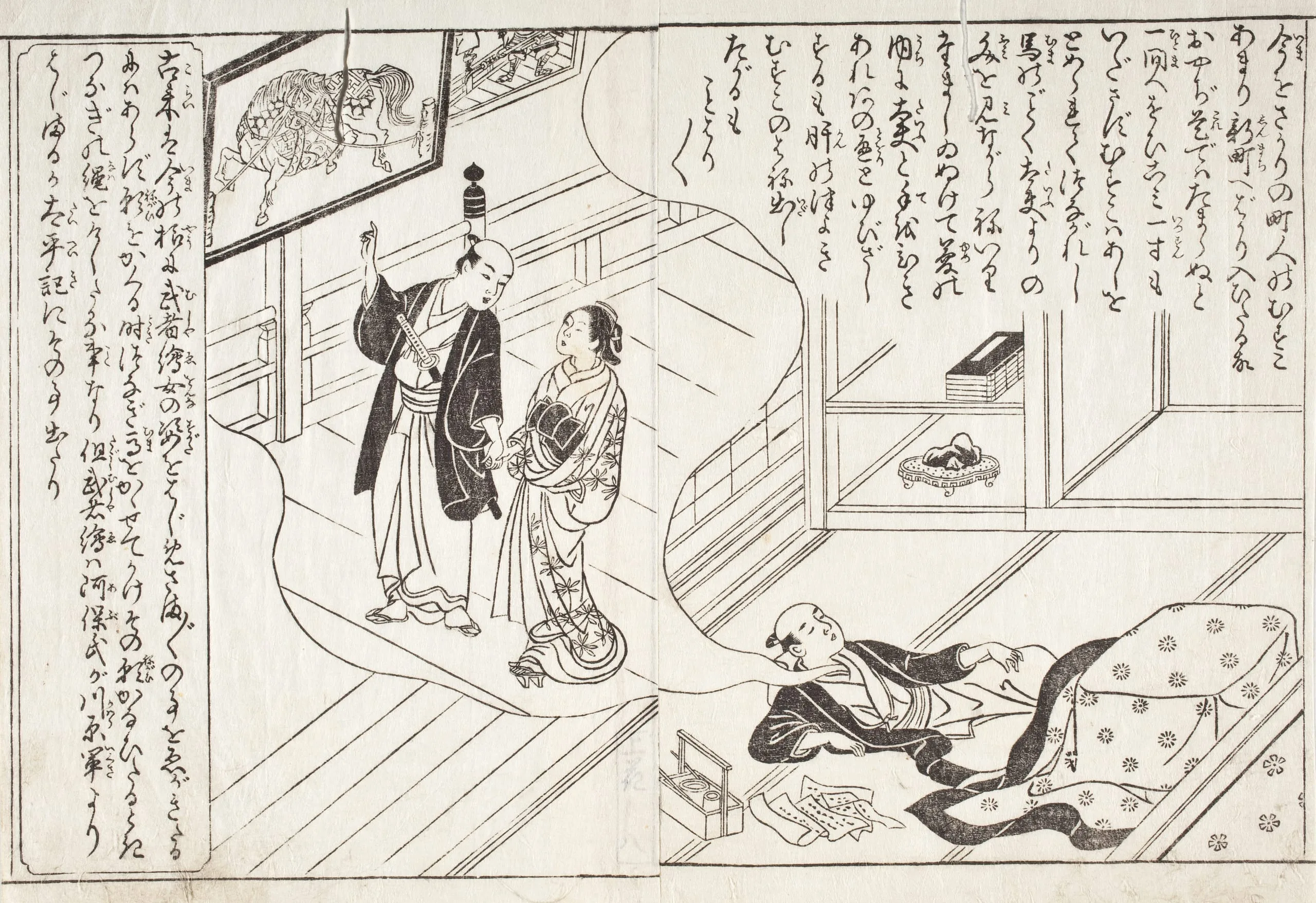 - Pair of Pages from an Illustrated Book (possibly Ehon Yamato bunko)