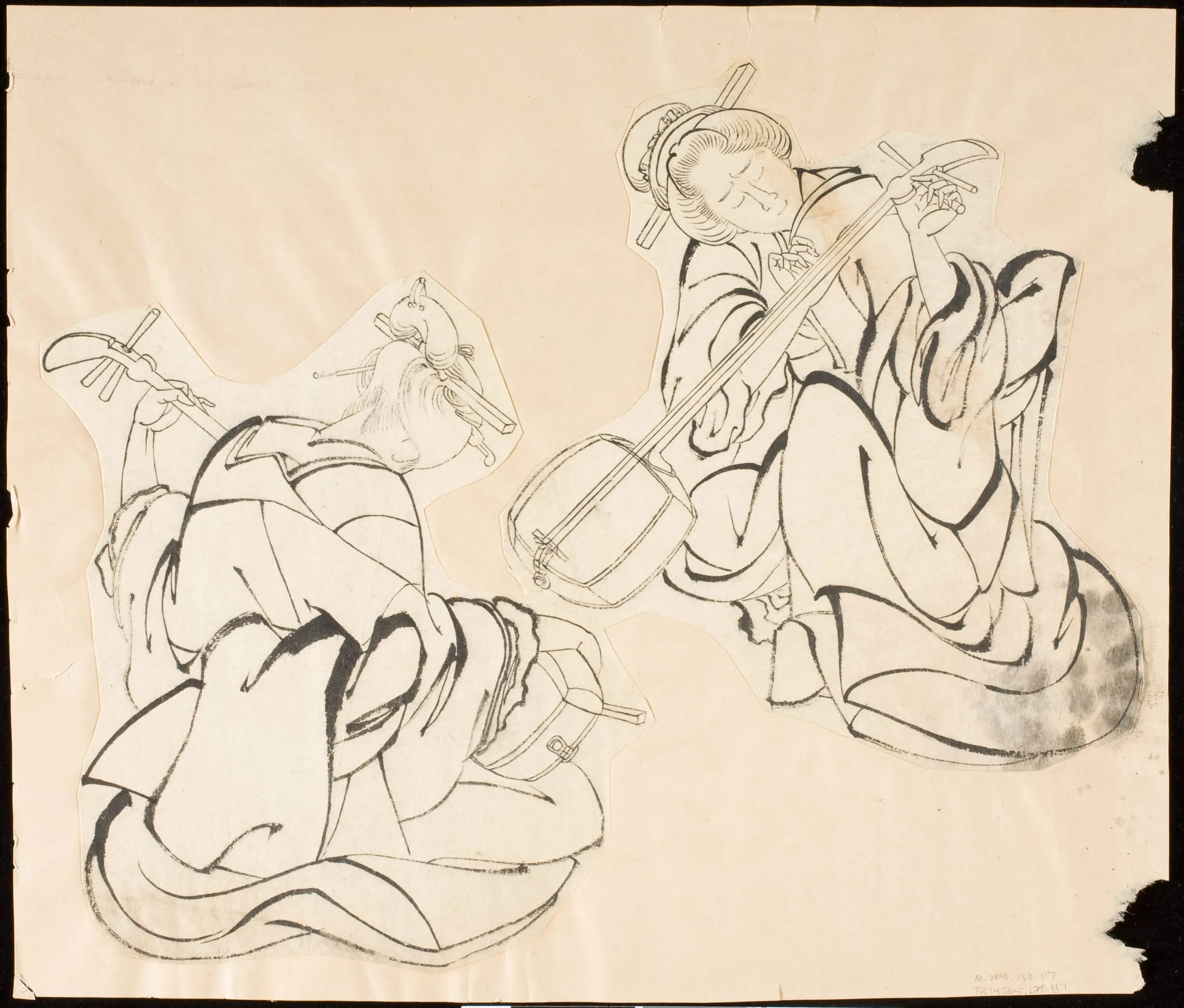 - Two drawings of women with samisen