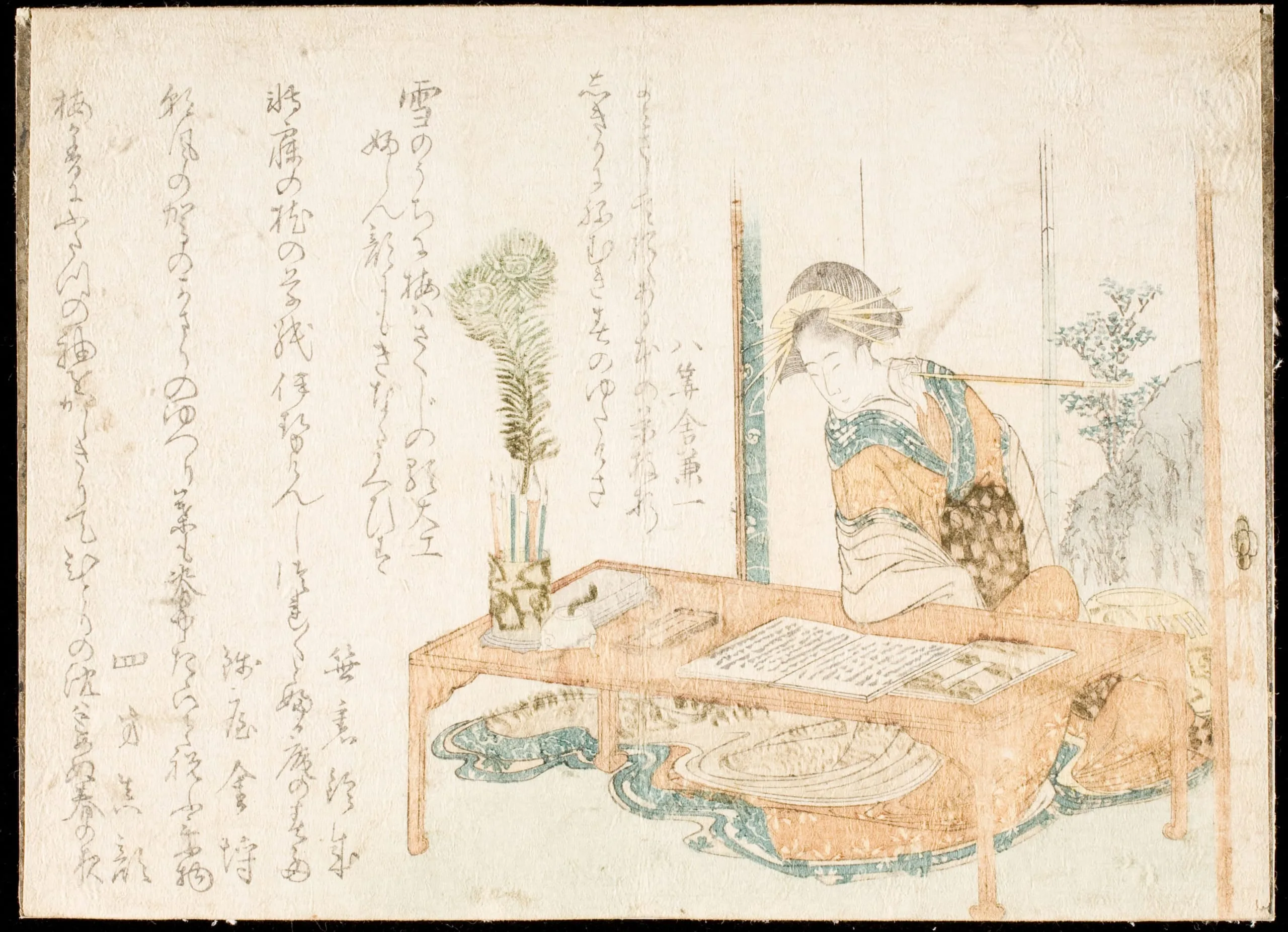 - Color woodblock print; surimono