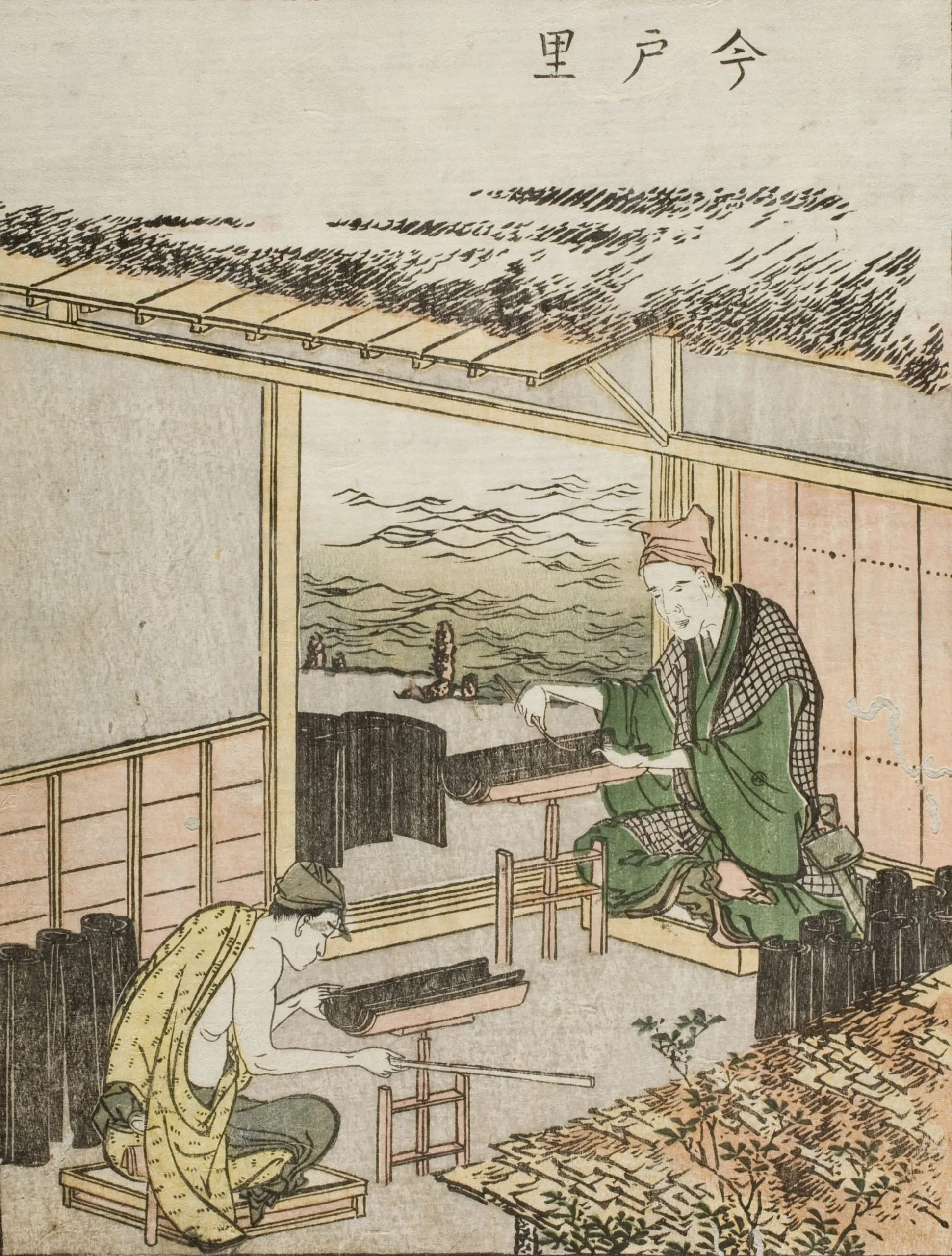 - Single-page book illustration; color woodblock print