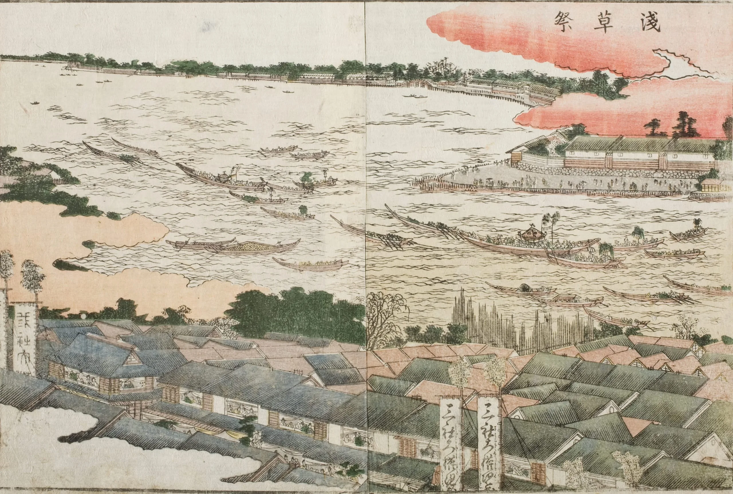 - Double-page book illustration; color woodblock print