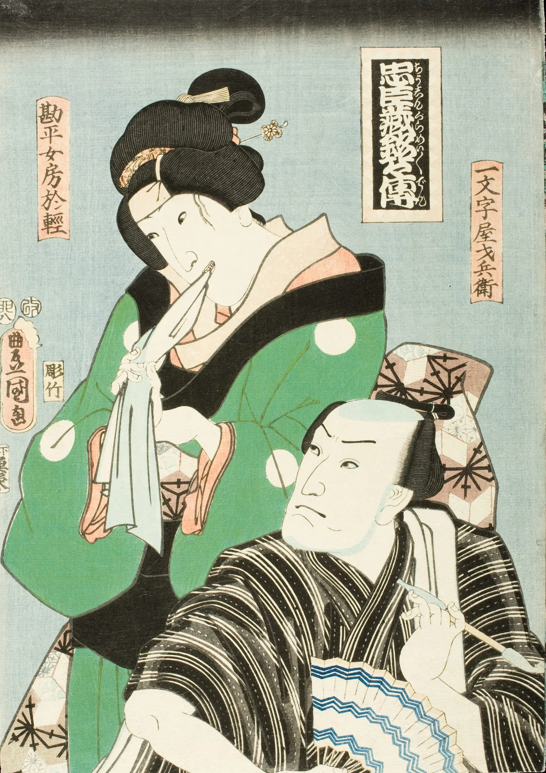 - Actors in Roles of Kanpei's wife, Okaru and Ichimonjiya Saibei from the Play Chūshingura