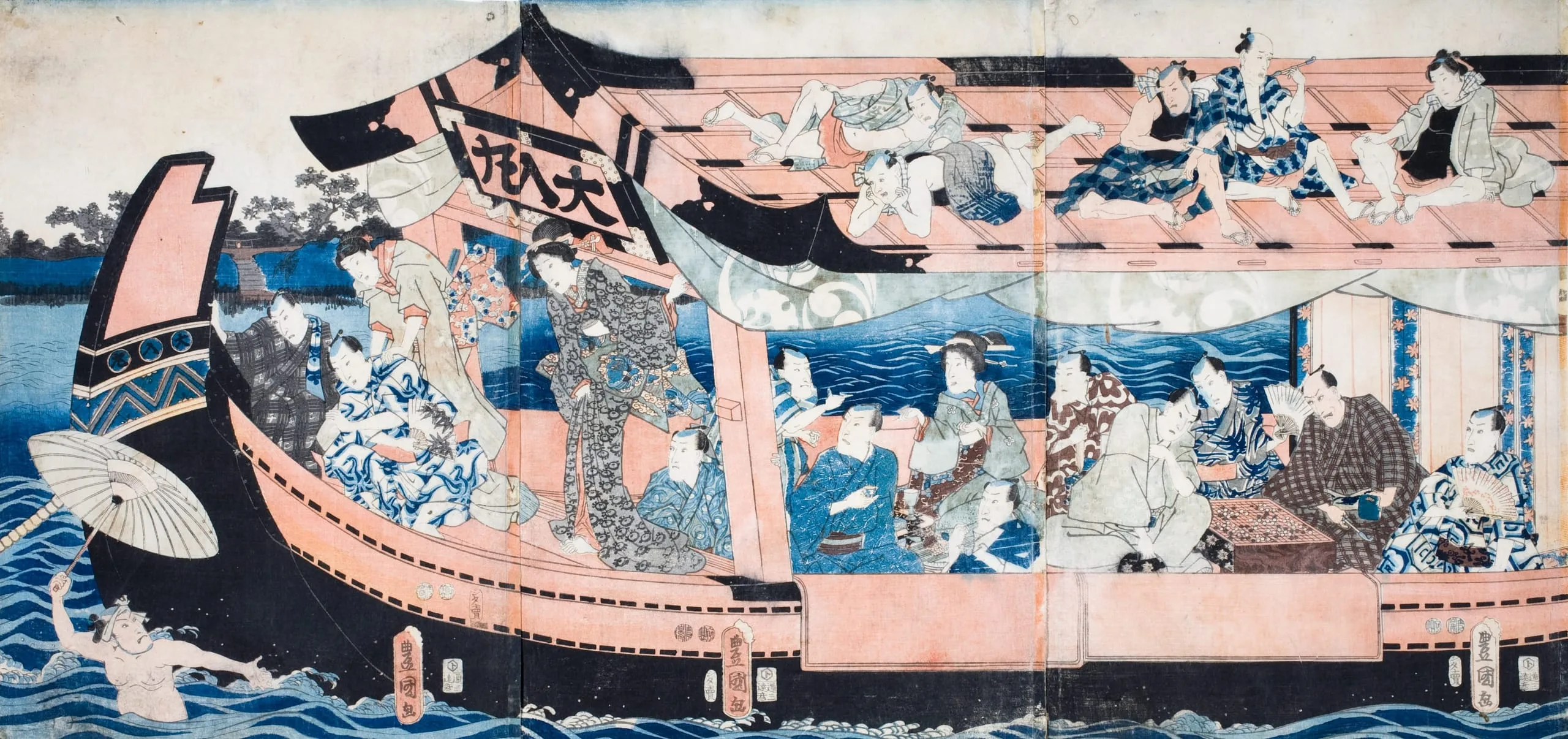 - Color woodblock print triptych
