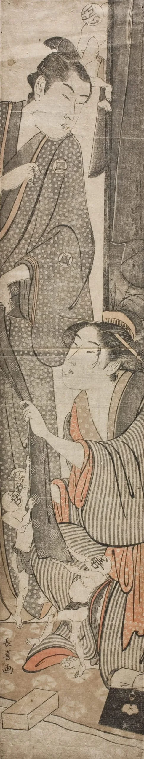 - Color woodblock prints; pillar print (two aiban sheets pieced together)