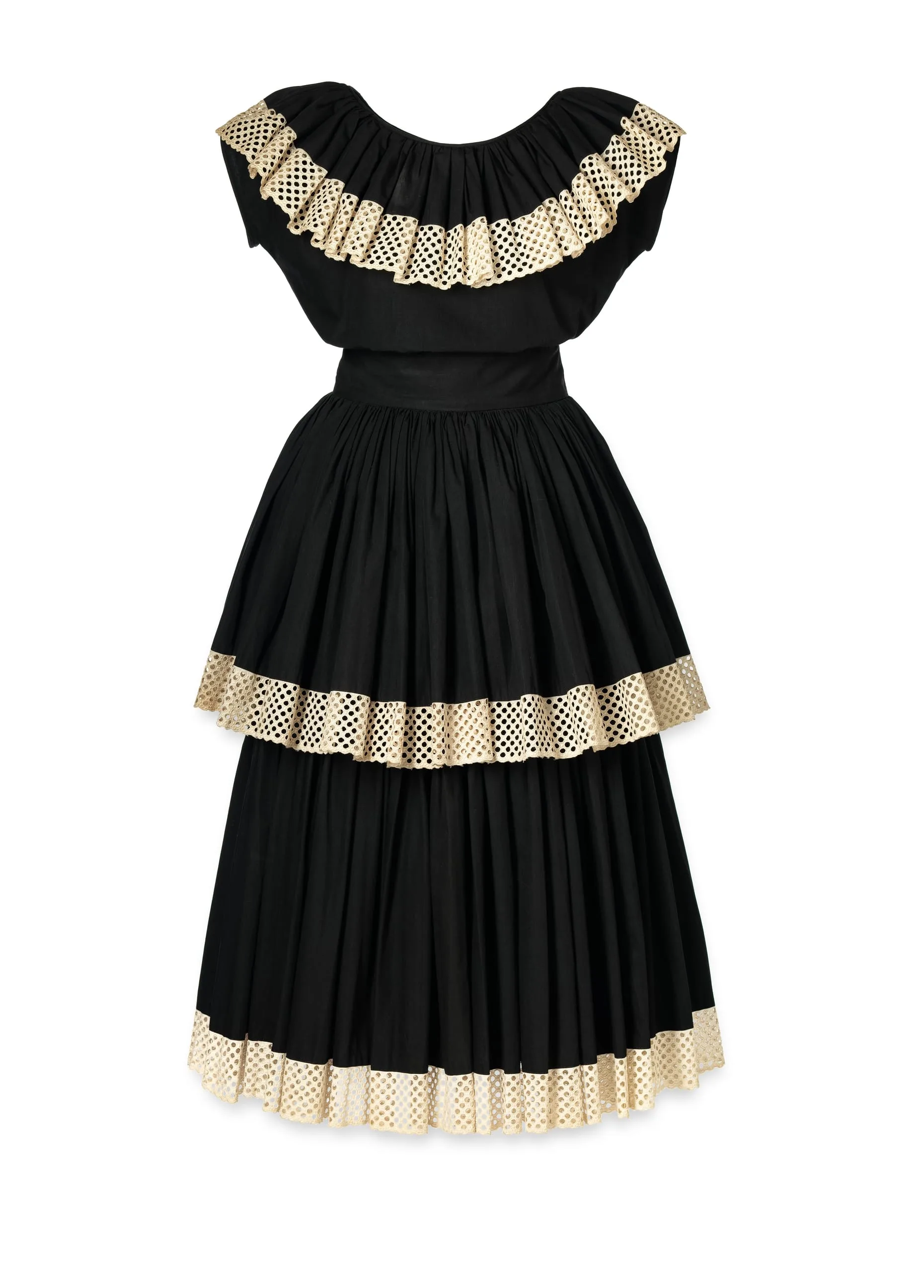 - Cotton plain weave with cotton eyelet embroidery