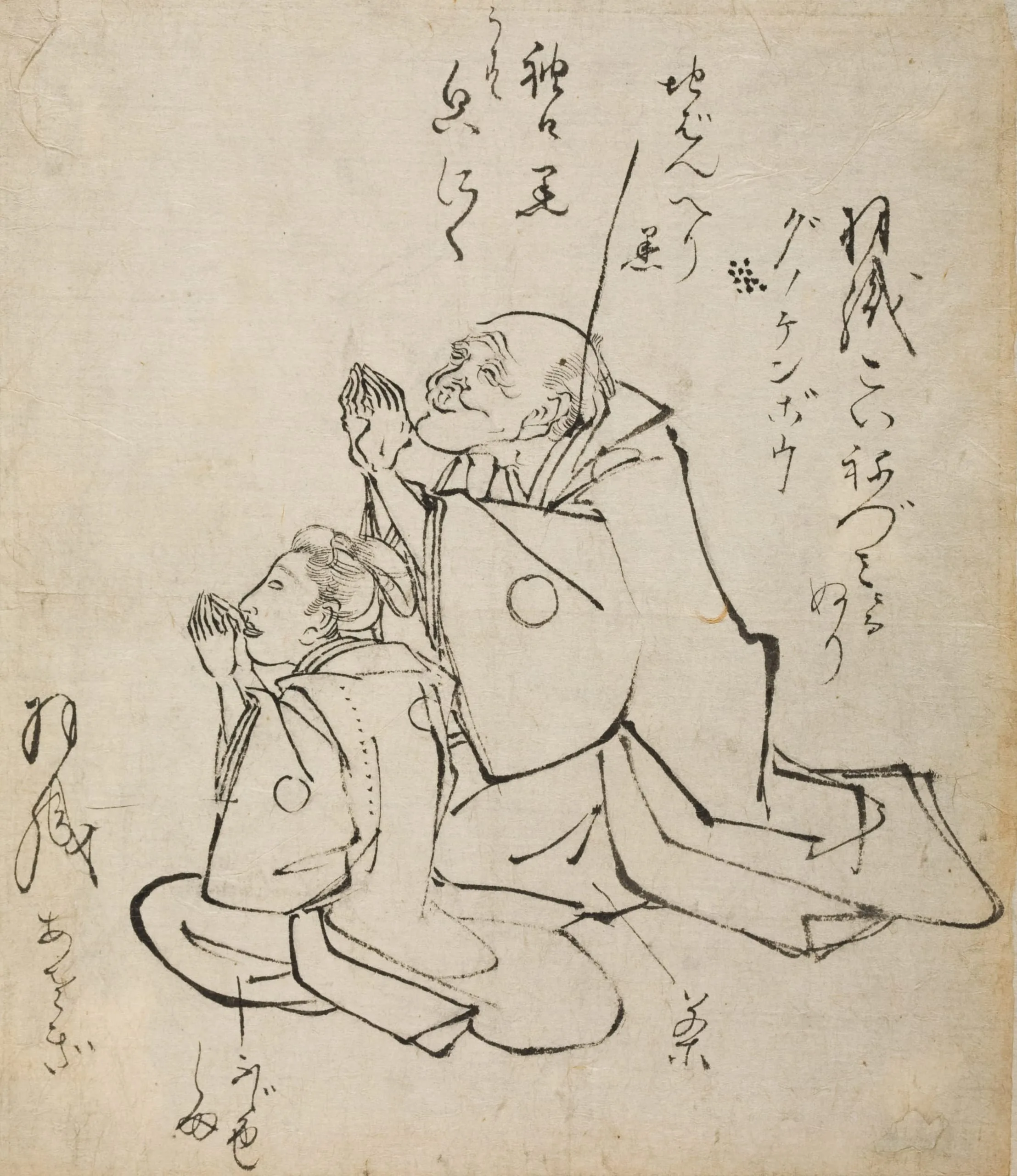 Old Man and Young Boy Paying Obeisance