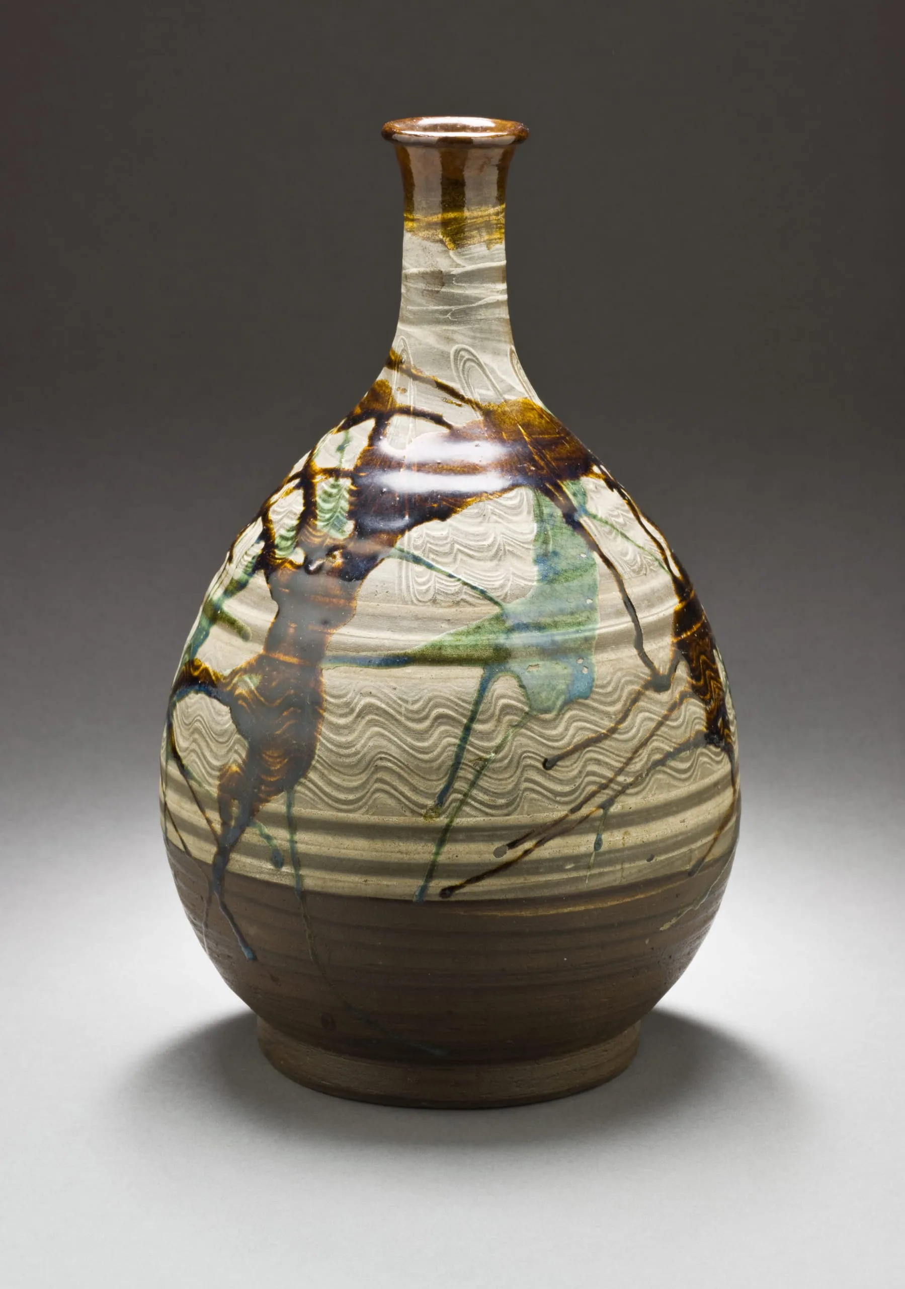 - Hizen ware, Takeo style; stoneware with white slip and green and brown glazes