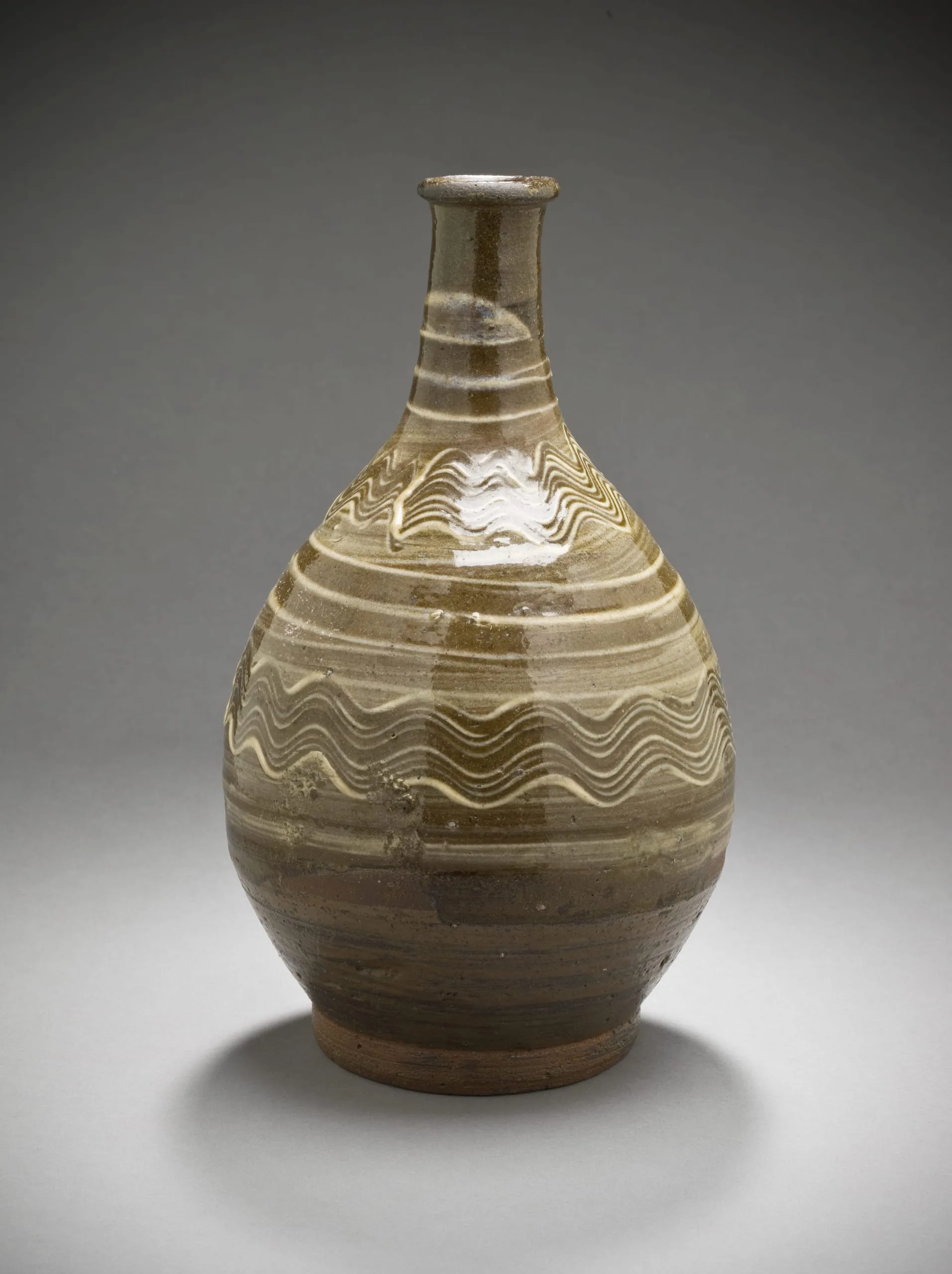 - Hizen ware, Takeo style; stoneware with iron wash and white slip