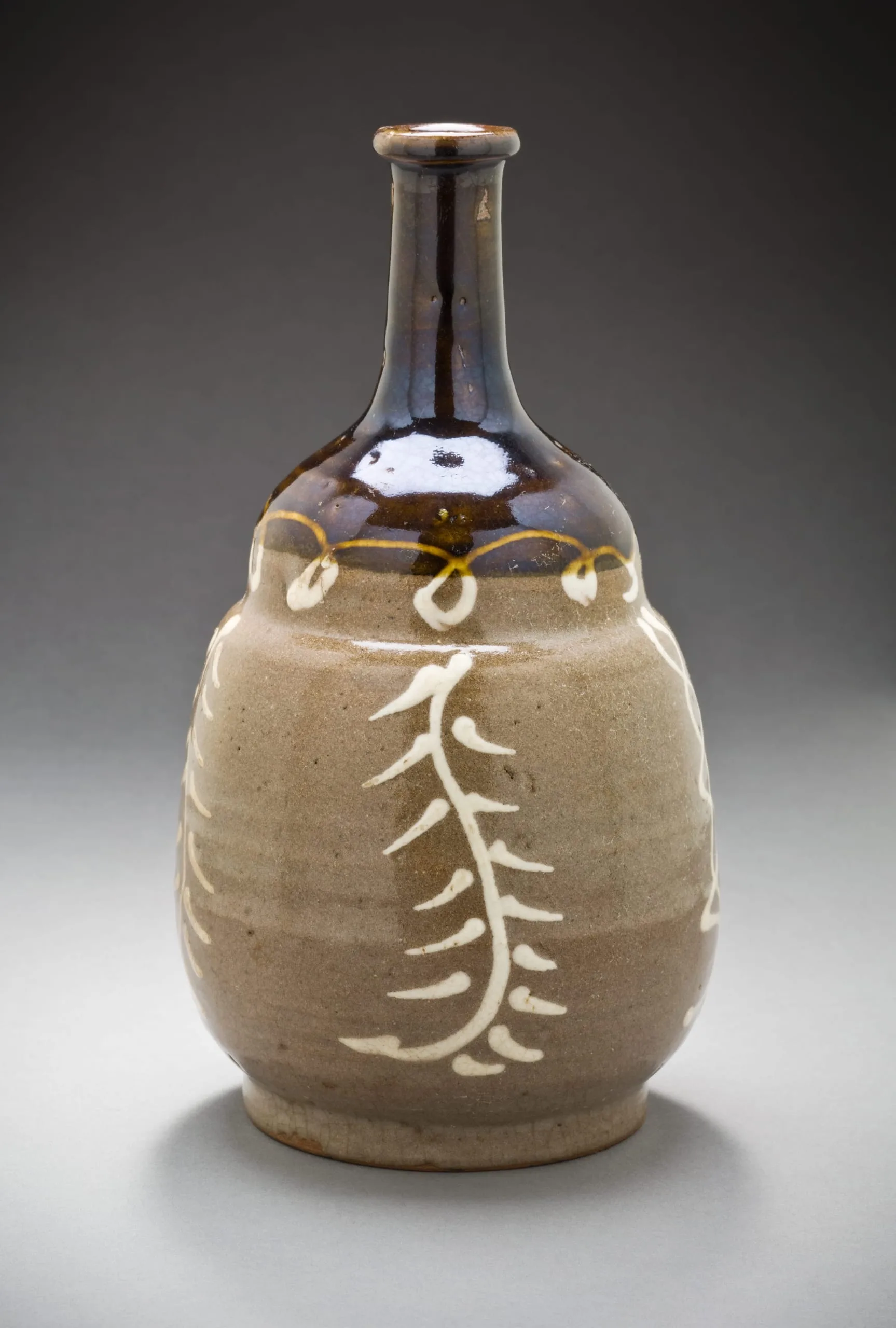 - Koishiwara ware; stoneware with white slip trail, clear and iron glazes