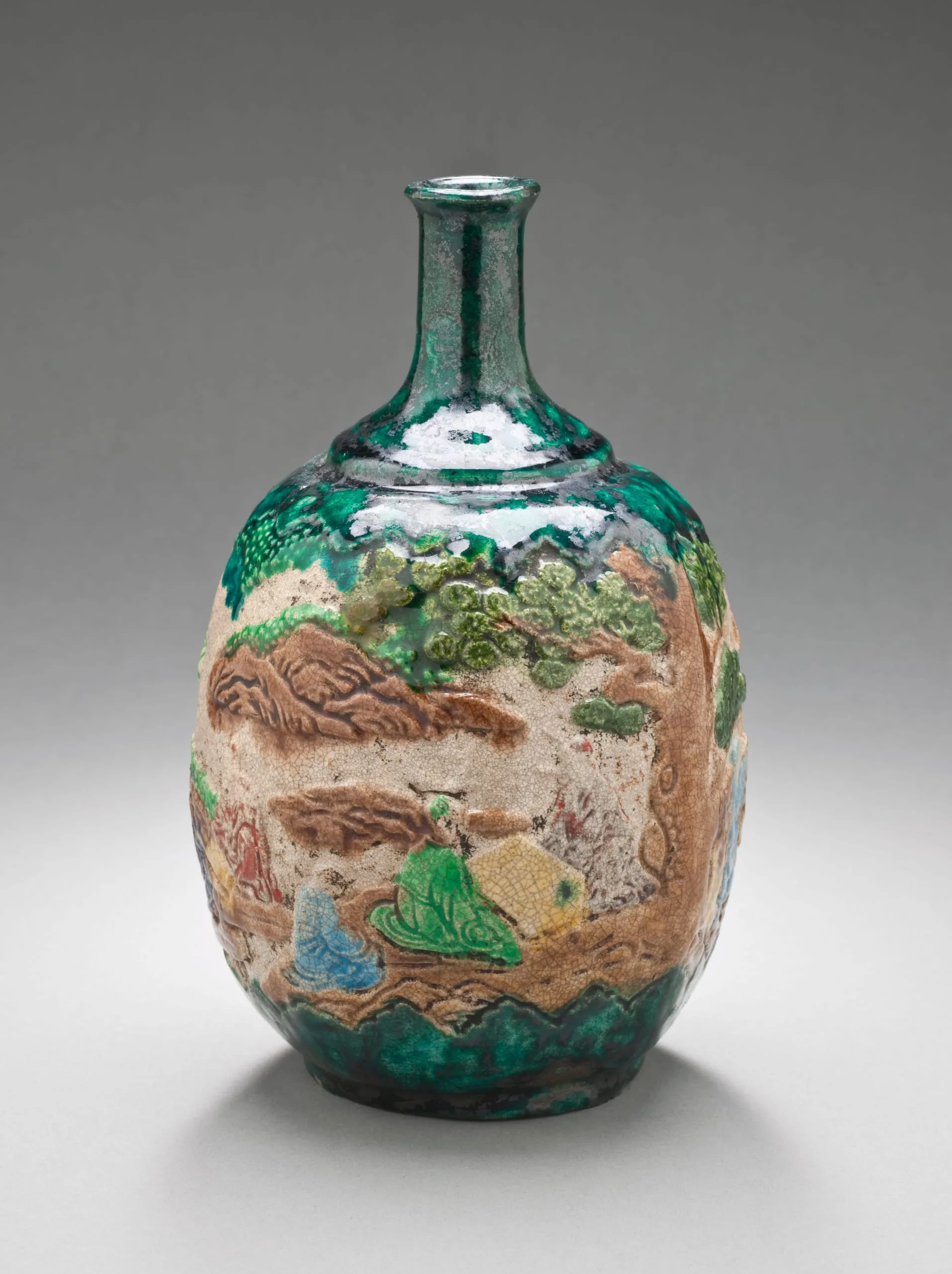 - Sake Bottle with Design of Daoist Immortals and a Kirin in a Landscape