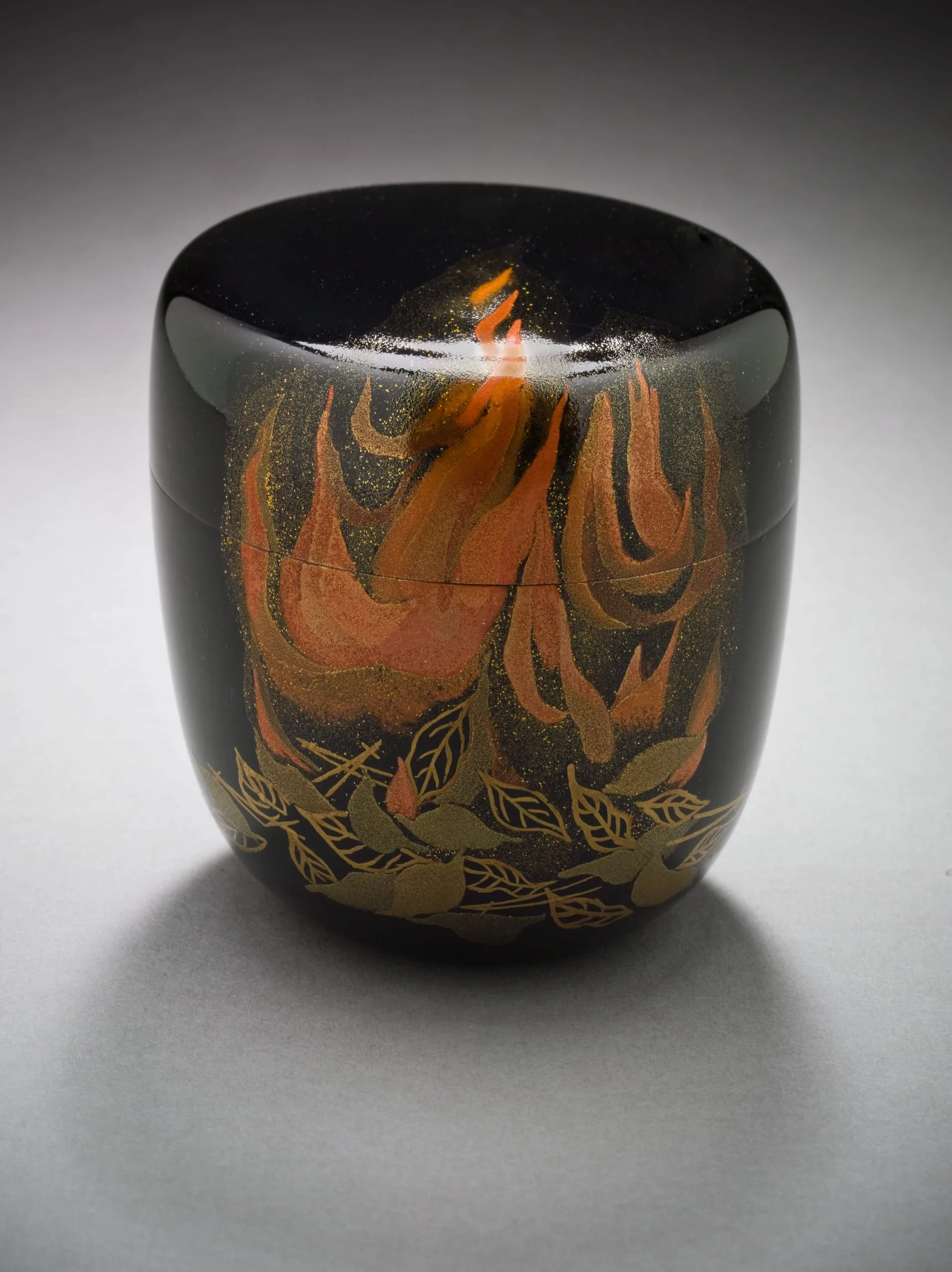 - Tea Caddy with Burning Autumn Leaves Design