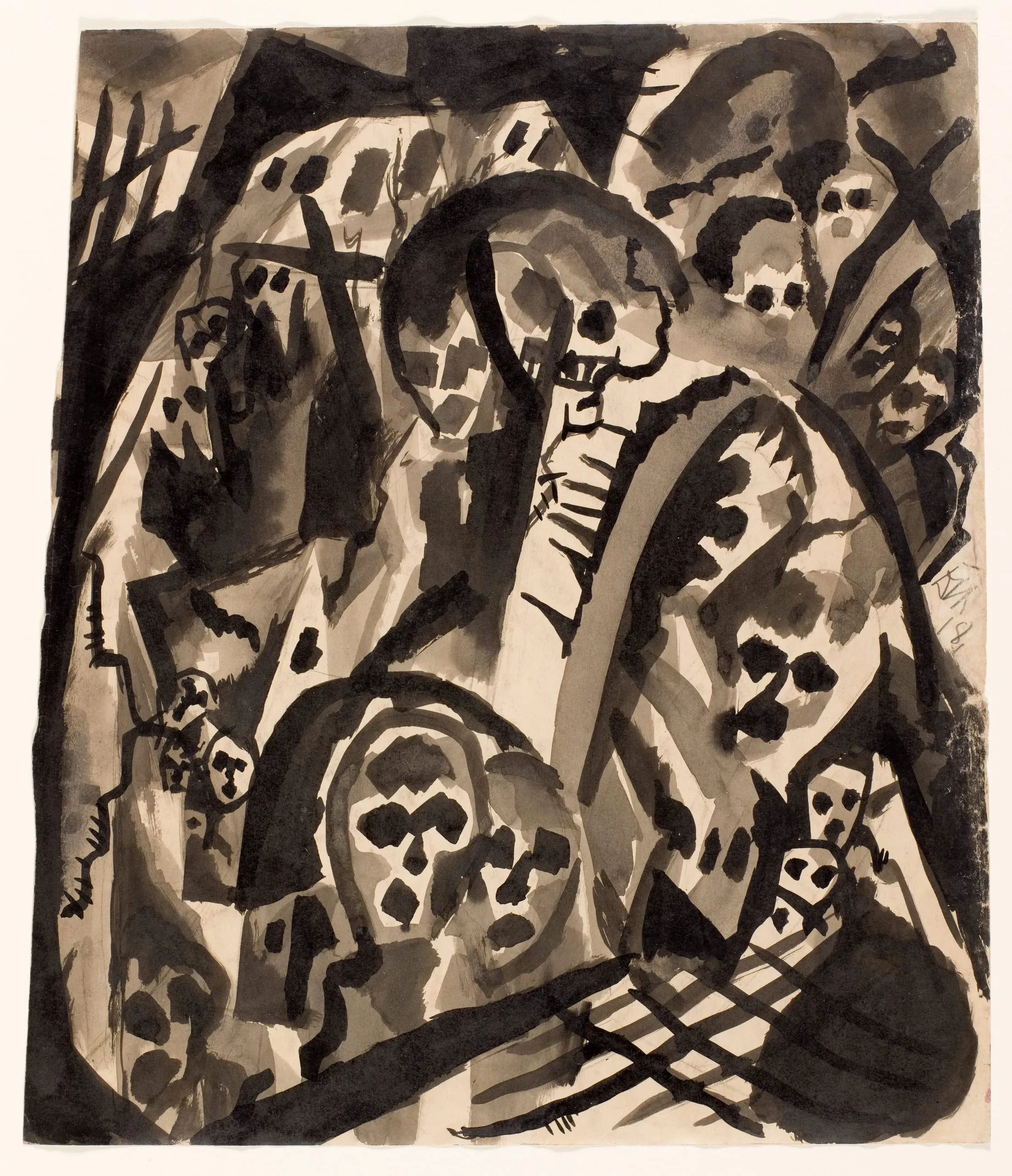 - Watercolor in gray and black over pencil