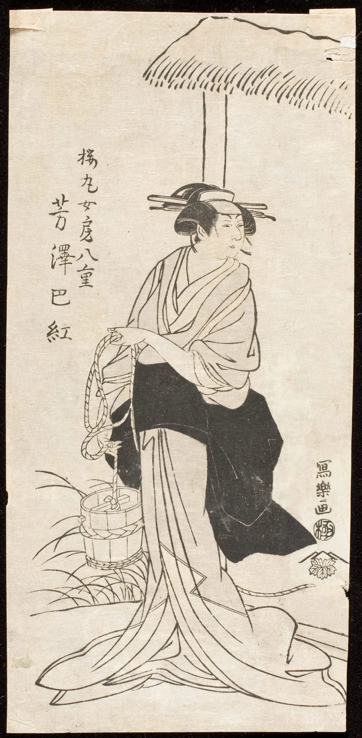 - Black and white woodblock print, appended signature